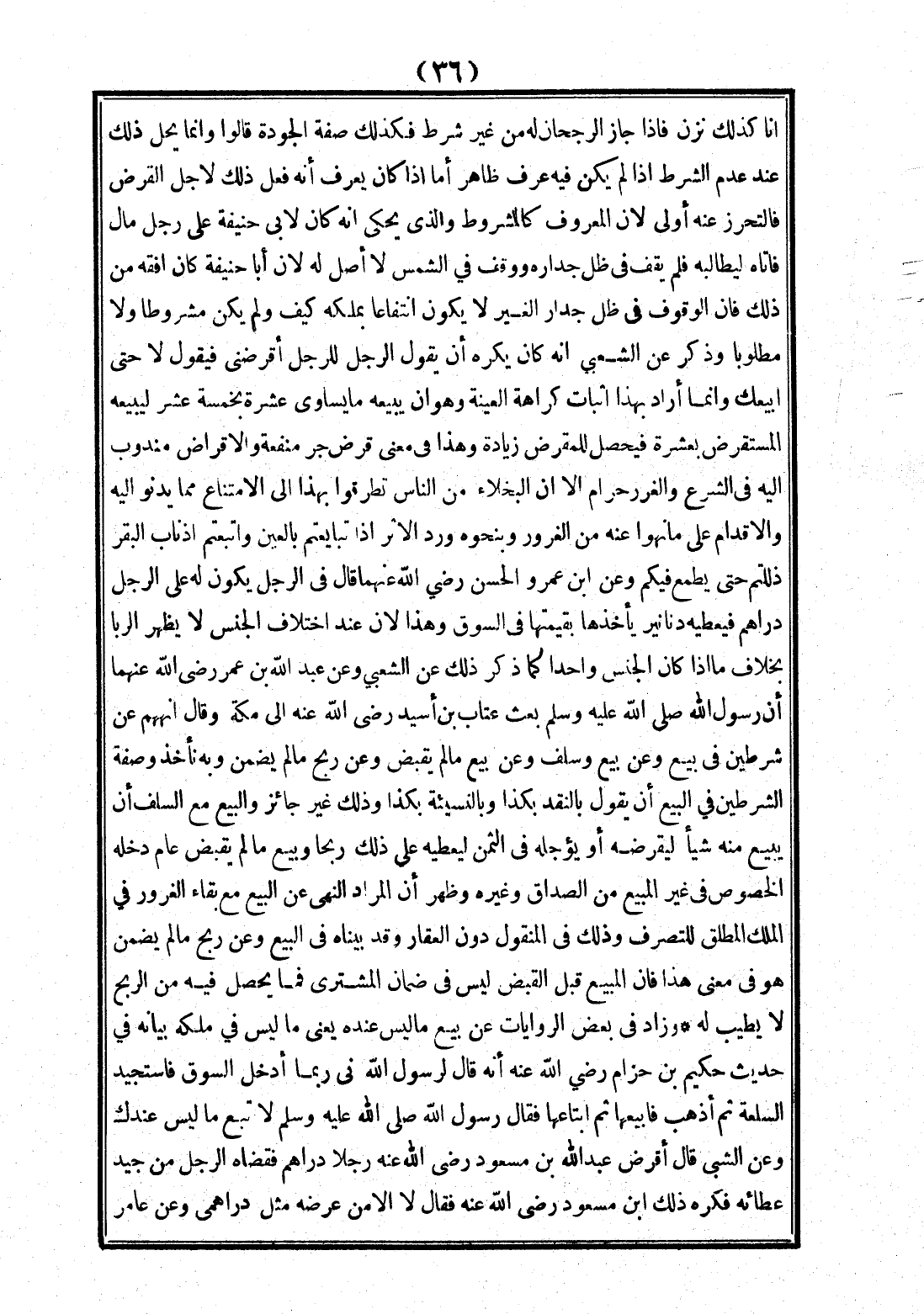 إنَّا كَذَلِكَ نَزِنُ.» فَإِذَا جَازَ الرُّجْحَانُ لَهُ مِنْ غَيْرِ شَرْطٍ فَكَذَلِكَ صِفَةُ الْجَوْدَةِ قَالُوا: وَإِنَّمَا يَحِلُّ ذَلِكَ عِنْدَ عَدَمِ الشَّرْطِ؛ إذَا لَمْ يَكُنْ فِيهِ عُرْفٌ ظَاهِرٌ أَمَّا إذَا كَانَ يُعْرَفُ أَنَّهُ فَعَلَ ذَلِكَ لِأَجْلِ الْقَرْضِ فَالتَّحَرُّزُ عَنْهُ أَوْلَى؛ لِأَنَّ الْمَعْرُوفَ كَالْمَشْرُوطِ وَاَلَّذِي يُحْكَى أَنَّهُ كَانَ لِأَبِي حَنِيفَةَ عَلَى رَجُلٍ مَالٌ فَأَتَاهُ لِيُطَالِبَهُ فَلَمْ يَقِفْ فِي ظِلِّ جِدَارِهِ وَوَقَفَ فِي الشَّمْسِ لَا أَصْلَ لَهُ؛ لِأَنَّ أَبَا حَنِيفَةَ كَانَ أَفْقَهُ مِنْ ذَلِكَ فَإِنَّ الْوُقُوفَ فِي ظِلِّ جِدَارِ الْغَيْرِ لَا يَكُونُ انْتِفَاعًا بِمِلْكِهِ كَيْفَ؟ وَلَمْ يَكُنْ مَشْرُوطًا، وَلَا مَطْلُوبًا، وَذُكِرَ عَنْ الشَّعْبِيِّ أَنَّهُ كَانَ يَكْرَهُ أَنْ يَقُولَ الرَّجُلُ لِلرَّجُلِ: أَقْرِضْنِي فَيَقُولُ: لَا حَتَّى أَبِيعَكَ وَإِنَّمَا أَرَادَ بِهَذَا إثْبَاتَ كَرَاهَةِ الْعِينَةِ وَهُوَ أَنْ يَبِيعَهُ مَا يُسَاوِي عَشَرَةً بِخَمْسَةَ عَشَرَ لِيَبِيعَهُ الْمُسْتَقْرِضُ بِعَشَرَةٍ فَيَحْصُلَ لِلْمُقْرِضِ زِيَادَةٌ وَهَذَا فِي مَعْنَى قَرْضٍ جَرَّ مَنْفَعَةً. .
