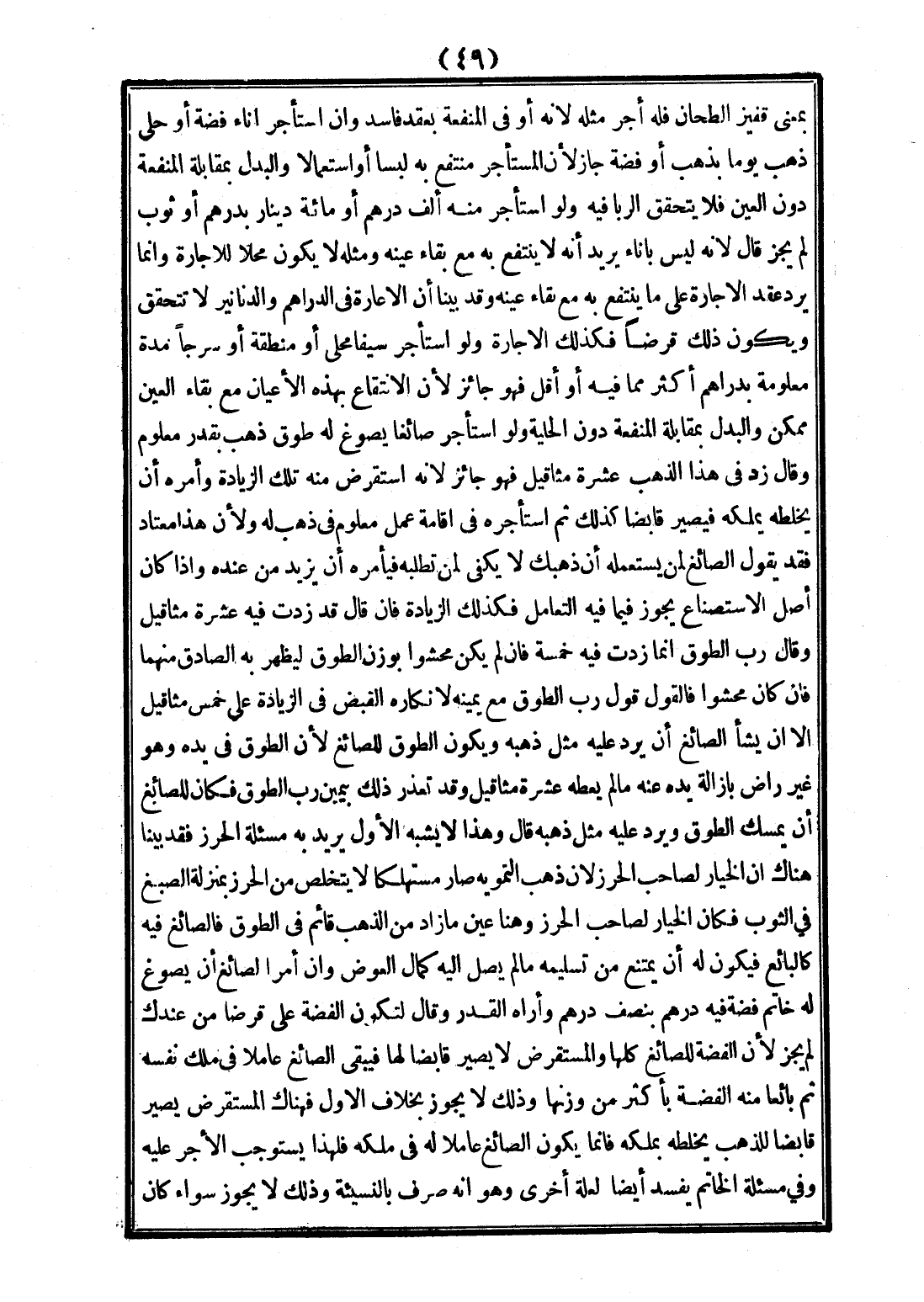 وَلَوْ اسْتَأْجَرَ مِنْهُ أَلْفَ دِرْهَمٍ، أَوْ مِائَةَ دِينَارٍ بِدِرْهَمٍ أَوْ ثَوْبٍ لَمْ يَجُزْ، قَالَ: لِأَنَّهُ لَيْسَ بِإِنَاءٍ يُرِيدُ أَنَّهُ لَا يُنْتَفَعُ بِهِ مَعَ بَقَاءِ عَيْنِهِ، وَمِثْلُهُ لَا يَكُونُ مَحَلًّا لِلْإِجَارَةِ، وَإِنَّمَا يَرِدُ عَقْدُ الْإِجَارَةِ عَلَى مَا يُنْتَفَعُ بِهِ مَعَ بَقَاءُ عَيْنِهِ، وَقَدْ بَيَّنَّا أَنَّ الْإِعَارَةَ فِي الدَّرَاهِمِ، وَالدَّنَانِيرِ لَا تَتَحَقَّقُ، وَيَكُونُ ذَلِكَ قَرْضًا، فَكَذَلِكَ الْإِجَارَةُ.