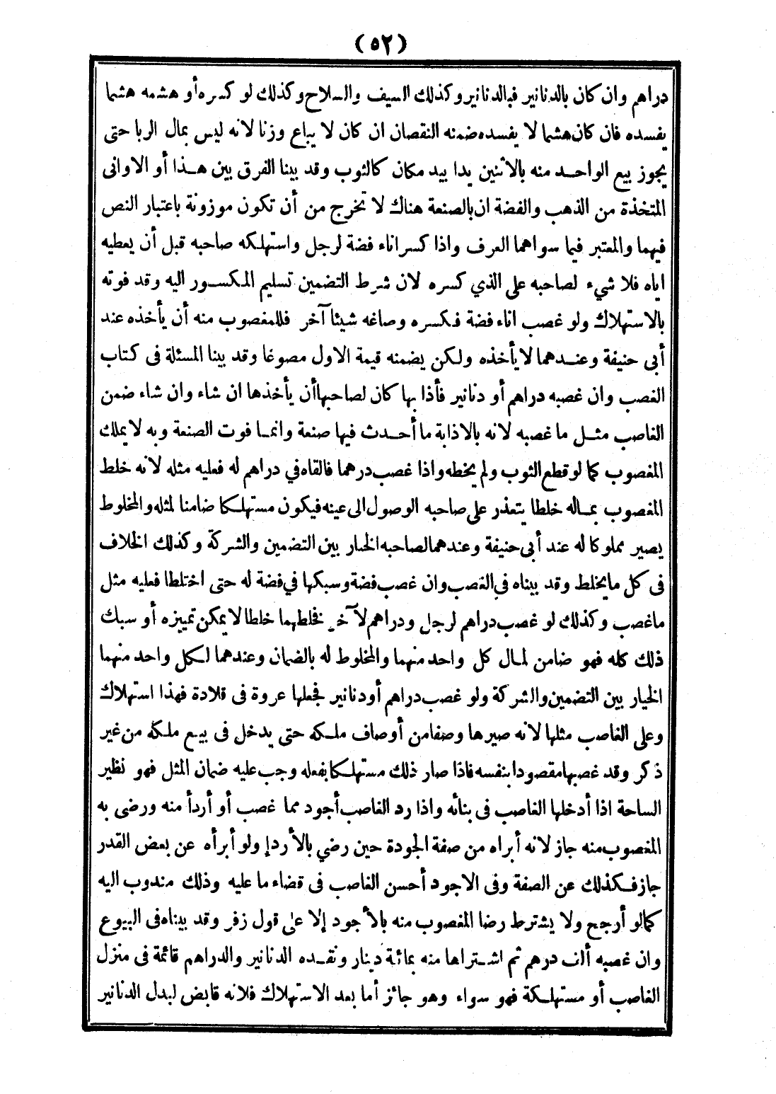 وَلَوْ غَصَبَ دَرَاهِمَ أَوْ دَنَانِيرَ، فَجَعَلَهَا عُرْوَةً فِي قِلَادَةٍ، فَهَذَا اسْتِهْلَاكٌ، وَعَلَى الْغَاصِبِ مِثْلُهَا؛ لِأَنَّهُ صَيَّرَهَا وَصْفًا مِنْ أَوْصَافِ مِلْكِهِ حَتَّى يُدْخِلَ بَيْعَ مِلْكِهِ مِنْ غَيْرِ ذِكْرٍ، وَقَدْ غَصَبَهَا - مَقْصُودًا - بِنَفْسِهِ، فَإِذَا صَارَ ذَلِكَ مُسْتَهْلَكًا بِفِعْلِهِ وَجَبَ عَلَيْهِ ضَمَانُ الْمِثْلِ، فَهُوَ نَظِيرُ السَّاحَةِ إذَا أَدْخَلَهَا الْغَاصِبُ فِي بِنَائِهِ.