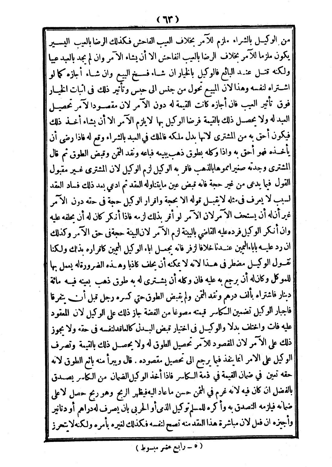وَإِذَا وَكَّلَهُ بِطَوْقِ ذَهَبٍ يَبِيعُهُ فَبَاعَهُ، وَنَقَدَ الثَّمَنَ، وَقَبَضَ الطَّوْقَ، ثُمَّ قَالَ الْمُشْتَرِي، وَجَدْته صَغِيرًا مُمَوَّهًا بِالذَّهَبِ، فَأَقَرَّ بِهِ الْوَكِيلُ، لَزِمَ الْوَكِيلَ؛ لِأَنَّ الْمُشْتَرِي غَيْرُ مَقْبُولِ الْقَوْلِ فِيمَا يَدَّعِي مِنْ غَيْرِ حُجَّةٍ، فَإِنَّهُ قَبَضَ عَيْنَ مَا يَتَنَاوَلُهُ الْعَقْدُ، ثُمَّ ادَّعَى بَعْد ذَلِكَ فَسَادَ الْعَقْدِ لِسَبَبٍ لَا يُعْرَفُ فِي مِثْلِهِ لَا يُقْبَلُ قَوْلُهُ إلَّا بِحُجَّةٍ، وَإِقْرَارُ الْوَكِيلُ حُجَّةٌ فِي حَقِّهِ دُونَ الْآمِرِ، غَيْرَ أَنَّ لَهُ أَنْ يَسْتَحْلِفَ الْآمِرَ؛ لِأَنَّ الْآمِرَ لَوْ أَقَرَّ بِذَلِكَ لَزِمَهُ، فَإِذَا أَنْكَرَ كَانَ لَهُ أَنْ يُحَلِّفَهُ عَلَيْهِ، وَإِنْ أَنْكَرَ الْوَكِيلُ فَرَدَّهُ عَلَيْهِ الْقَاضِي بِالْبَيِّنَةِ لَزِمَ الْآمِرَ؛ لِأَنَّ الْبَيِّنَةَ حُجَّةٌ فِي حَقِّ الْآمِرِ، وَكَذَلِكَ إنْ رَدَّ عَلَيْهِ بِإِبَاءِ الْيَمِينِ عِنْدَنَا خِلَافًا لِزُفَرَ فَإِنَّهُ يَجْعَلُ إبَاءَ الْوَكِيلِ الْيَمِينَ كَإِقْرَارِهِ بِذَلِكَ، وَلَكِنَّا نَقُولُ: الْوَكِيلُ مُضْطَرٌّ فِي هَذَا؛ لِأَنَّهُ لَا يُمْكِنُهُ أَنْ يَحْلِفَ كَاذِبًا، وَهَذِهِ الضَّرُورَةُ لَهُ يَعْمَلُ بِهَا لِلْمُوَكِّلِ، وَكَانَ لَهُ أَنْ يَرْجِعَ بِهِ عَلَيْهِ، فَإِنْ وَكَّلَهُ أَنْ يَشْتَرِيَ لَهُ بِهِ طَوْقَ ذَهَبٍ بِعَيْنِهِ فِيهِ مِائَةُ دِينَارٍ فَاشْتَرَاهُ بِأَلْفِ دِرْهَمٍ وَنَقَدَ الثَّمَنَ، وَلَمْ يَقْبِضْ الطَّوْقَ حَتَّى كَسَرَهُ رَجُلٌ قَبْلَ أَنْ يَتَفَرَّقَا، فَإِجْبَارُ الْوَكِيلِ تَضْمِينُ الْكَاسِرِ قِيمَتَهُ مَصُوغًا مِنْ الْفِضَّةِ؛ جَازَ ذَلِكَ عَلَى الْوَكِيلِ؛ لِأَنَّ الْمَعْقُودَ عَلَيْهِ فَاتَ، وَاخْتَلَفَ بَدَلًا، وَالْوَكِيلُ فِي اخْتِيَارِ قَبْضِ الْبَدَلِ كَالْعَاقِدِ لِنَفْسِهِ فِي حَقِّهِ، وَلَا يَجُوزُ ذَلِكَ عَلَى الْآمِرِ؛ لِأَنَّ الْمَقْصُودَ لِلْآمِرِ تَحْصِيلُ الطَّوْقِ لَهُ، وَلَا يَحْصُلُ ذَلِكَ بِالْقِيمَةِ، وَتَصَرُّفُ الْوَكِيلِ عَلَى الْآمِرِ إنَّمَا يَنْفُذُ فِيمَا يَرْجِعُ إلَى تَحْصِيلِ مَقْصُودِهِ، قَالَ: وَيَبْرَأُ مِنْهُ بَائِعُ الطَّوْقِ؛ لِأَنَّهُ حَقُّهُ تَعَيَّنَ فِي ضَمَانِ الْقِيمَةِ فِي ذِمَّةِ الْكَاسِرِ، فَإِذَا أَخَذَ الْوَكِيلُ الضَّمَانَ مِنْ الْكَاسِرِ يُصَدَّقُ بِالْفَضْلِ إنْ كَانَ فِيهِ؛ لِأَنَّهُ غَرِمَ فِي الثَّمَنِ حُسْنَ مَا عَادَ إلَيْهِ، فَيَظْهَرُ الرِّبْحُ، وَهُوَ رِبْحٌ حَصَلَ لَا عَلَى ضَمَانِهِ فَيَلْزَمُهُ التَّصَدُّقُ بِهِ.