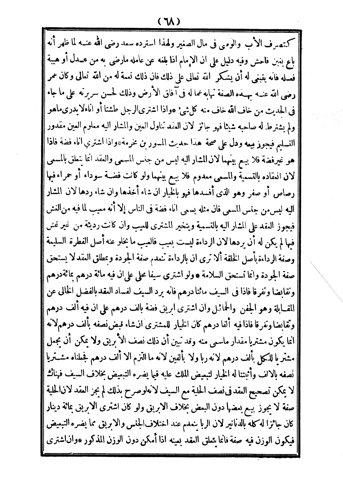 وَلَوْ اشْتَرَى سَيْفًا مُحَلَّى عَلَى أَنَّ فِيهِ مِائَةَ دِرْهَمٍ بِمِائَةِ دِرْهَمٍ وَتَقَابَضَا، وَتَفَرَّقَا، فَإِذَا فِي السَّيْفِ مِائَتَا دِرْهَمٍ، فَإِنَّهُ يَرُدُّ السَّيْفَ؛ لِفَسَادِ الْعَقْدِ بِالْفَضْلِ الْخَالِي عَنْ الْمُقَابَلَةِ، وَهُوَ الْجَفْنُ وَالْحَمَائِلُ.