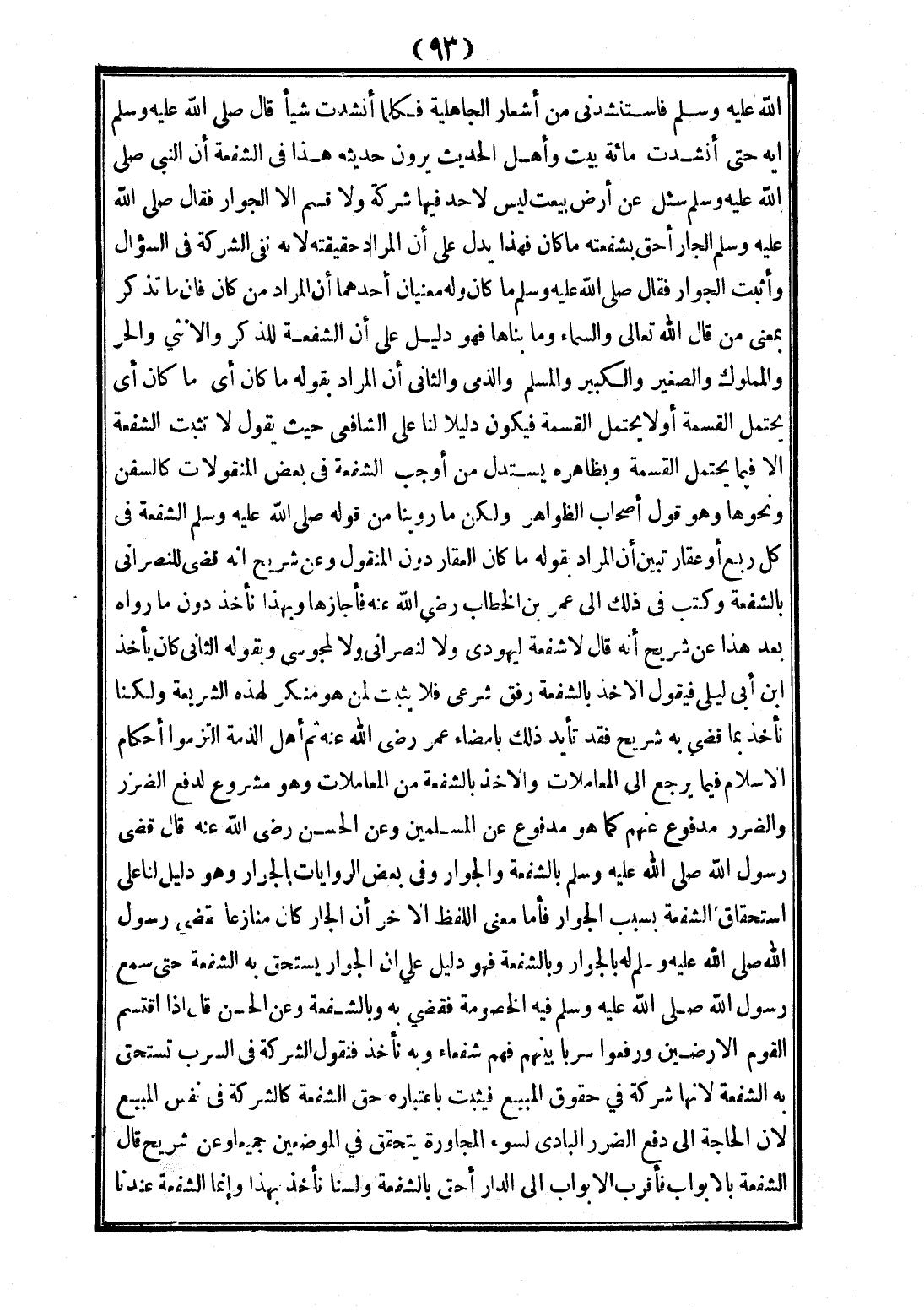 وَعَنْ الْحَسَنِ - رَضِيَ اللَّهُ عَنْهُ - قَالَ: «قَضَى رَسُولُ اللَّهِ - صَلَّى اللَّهُ عَلَيْهِ وَسَلَّمَ - بِالشُّفْعَةِ، وَالْجِوَارِ» وَفِي بَعْضِ الرِّوَايَات بِالْجِوَارِ، وَهُوَ دَلِيلٌ لَنَا عَلَى اسْتِحْقَاقِ الشُّفْعَةِ بِسَبَبِ الْجِوَارِ فَأَمَّا مَعْنَى اللَّفْظِ الْآخَرِ «أَنَّ الْجَارَ كَانَ مُنَازِعًا، فَقَضَى رَسُولُ اللَّهِ - صَلَّى اللَّهُ عَلَيْهِ وَسَلَّمَ - لَهُ بِالْجِوَارِ وَبِالشُّفْعَةِ»، فَهُوَ دَلِيلٌ عَلَى أَنَّ الْجِوَارَ يُسْتَحَقُّ بِهِ الشُّفْعَةُ حَتَّى سَمِعَ رَسُولُ اللَّهِ - صَلَّى اللَّهُ عَلَيْهِ وَسَلَّمَ - فِيهِ الْخُصُومَةَ فَقَضَى بِهِ وَبِالشُّفْعَةِ، وَعَنْ الْحَسَنِ قَالَ: إذَا اقْتَسَمَ الْقَوْمُ الْأَرَضِينَ وَرَفَعُوا سَرَبًا بَيْنَهُمْ فَهُمْ شُفَعَاءُ، وَبِهِ نَأْخُذُ، فَنَقُولُ: الشَّرِكَةُ فِي السَّرَبِ تُسْتَحَقُّ بِهِ الشُّفْعَةُ؛ لِأَنَّهَا شَرِكَةٌ فِي حُقُوقِ الْمَبِيعِ فَيَثْبُتُ بِاعْتِبَارِهِ حَقُّ الشُّفْعَةِ كَالشَّرِكَةِ فِي نَفْسِ الْمَبِيعِ؛ لِأَنَّ الْحَاجَةَ إلَى دَفْعِ الضَّرَرِ الْبَادِي لِسُوءِ الْمُجَاوَرَةِ يَتَحَقَّقُ فِي الْمَوْضِعَيْنِ جَمِيعًا، وَعَنْ شُرَيْحٍ قَالَ: الشُّفْعَةُ بِالْأَبْوَابِ، فَأَقْرَبُ الْأَبْوَابِ إلَى الدَّارِ أَحَقُّ بِالشُّفْعَةِ وَلَسْنَا نَأْخُذُ بِهَذَا، وَإِنَّمَا الشُّفْعَةُ عِنْدَنَا