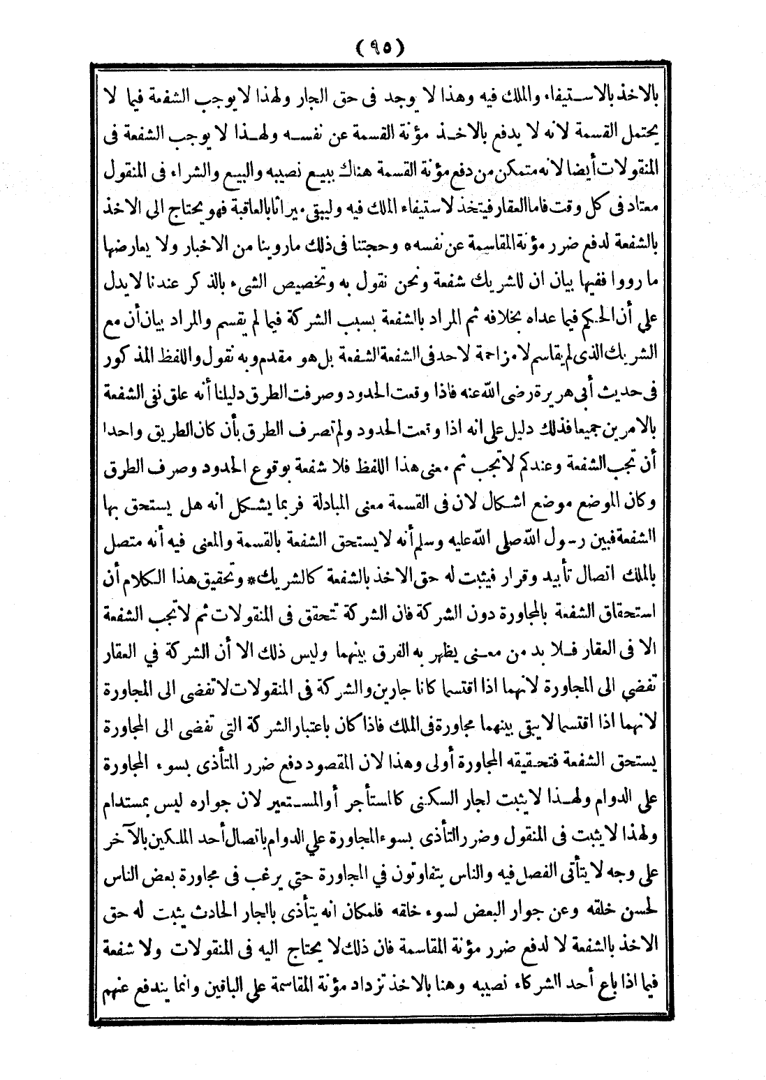 بِالْأَخْذِ بِالِاسْتِيفَاءِ، وَالْمِلْكِ فِيهِ، وَهَذَا لَا يُوجَدُ فِي حَقِّ الْجَارِ؛ وَلِهَذَا لَا يُوجِبُ الشُّفْعَةَ فِيمَا لَا يَحْتَمِلُ الْقِسْمَةَ؛ لِأَنَّهُ لَا يَدْفَعُ بِالْأَخْذِ مُؤْنَةَ الْقِسْمَةِ عَنْ نَفْسِهِ؛ وَلِهَذَا لَا يُوجِبُ الشُّفْعَةَ فِي الْمَنْقُولَاتِ أَيْضًا؛ لِأَنَّهُ مُتَمَكِّنٌ مِنْ دَفْعِ مُؤْنَةِ الْقِسْمَةِ هُنَاكَ بِبَيْعِ نَصِيبِهِ، وَالْبَيْعُ، وَالشِّرَاءُ فِي الْمَنْقُولِ مُعْتَادٌ فِي كُلِّ وَقْتٍ