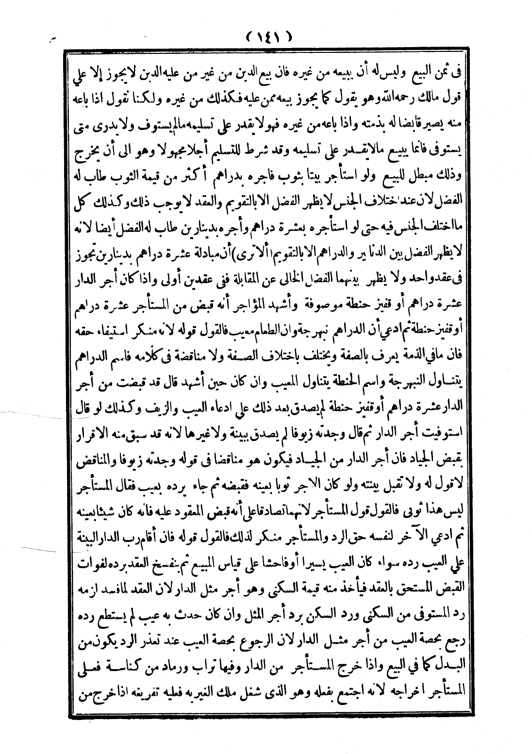 فِي ثَمَنِ الْبَيْعِ، وَلَيْسَ لَهُ أَنْ يَبِيعَهُ مِنْ غَيْرِهِ فَإِنَّ بَيْعَ الدَّيْنِ مِنْ غَيْرِ مَنْ عَلَيْهِ الدَّيْنُ لَا يَجُوزُ إلَّا عَلَى قَوْلِ مَالِكٍ - رَحِمَهُ اللَّهُ - وَهُوَ يَقُولُ: كَمَا يَجُوزُ بَيْعُهُ مِمَّنْ عَلَيْهِ، فَكَذَلِكَ مِنْ غَيْرِهِ، وَلَكِنَّا نَقُولُ إذَا بَاعَهُ مِنْهُ يَصِيرُ قَابِضًا لَهُ بِذِمَّتِهِ وَإِذَا بَاعَهُ مِنْ غَيْرِهِ فَهُوَ لَا يَقْدِرُ عَلَى تَسْلِيمِهِ مَا لَمْ يَسْتَوْفِ وَلَا يَدْرِي مَتَى يَسْتَوْفِي فَإِنَّمَا يَبِيعُ مَا لَا يَقْدِرُ عَلَى تَسْلِيمِهِ وَقَدْ شَرَطَ لِلتَّسْلِيمِ أَجَلًا مَجْهُولًا وَهُوَ إلَى أَنْ يَخْرُجَ، وَذَلِكَ مُبْطِلٌ لِلْبَيْعِ وَلَوْ اسْتَأْجَرَ بَيْتًا بِثَوْبٍ فَأَجَرَهُ بِدَرَاهِمَ أَكْثَرَ مِنْ قِيمَةِ الثَّوْبِ طَابَ لَهُ الْفَضْلُ لِأَنَّ عِنْدَ اخْتِلَافِ الْجِنْسِ لَا يَظْهَرُ الْفَضْلُ إلَّا بِالتَّقْوِيمِ، وَالْعَقْدُ لَا يُوجِبُ ذَلِكَ، وَكَذَلِكَ كُلُّ مَا اخْتَلَفَ الْجِنْسُ فِيهِ حَتَّى لَوْ اسْتَأْجَرَهُ بِعَشَرَةِ دَرَاهِمَ وَأَجَرَهُ بِدِينَارَيْنِ طَابَ لَهُ الْفَضْلُ أَيْضًا؛ لِأَنَّهُ لَا يَظْهَرُ الْفَضْلُ بَيْنَ الدَّنَانِيرِ وَالدَّرَاهِمِ إلَّا بِالتَّقْوِيمِ.