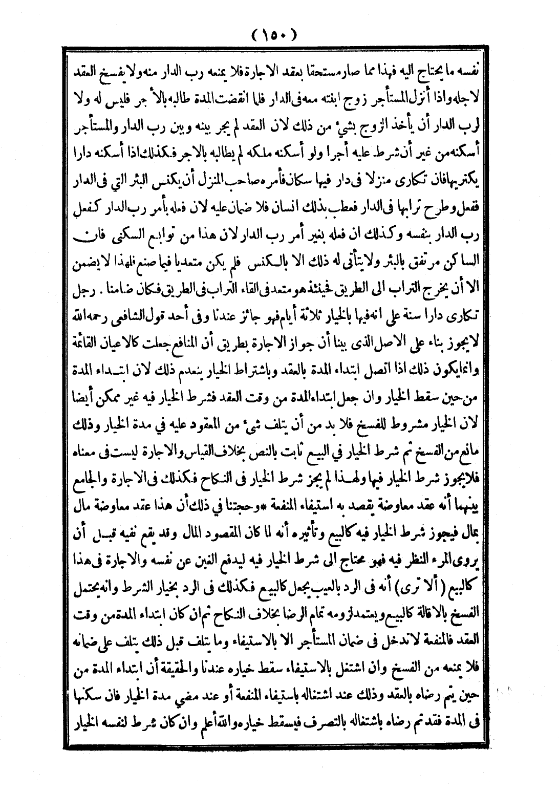 (أَلَا تَرَى) أَنَّهُ فِي الرَّدِّ بِالْعَيْبِ يُجْعَلُ كَالْبَيْعِ، فَكَذَلِكَ فِي الرَّدِّ بِخِيَارِ الشَّرْطِ وَأَنَّهُ يَحْتَمِلُ الْفَسْخَ بِالْإِقَالَةِ كَالْبَيْعِ وَيَعْتَمِدُ لُزُومُهُ تَمَامَ الرِّضَا بِخِلَافِ النِّكَاحِ، ثُمَّ إنْ كَانَ ابْتِدَاءُ الْمُدَّةِ مِنْ وَقْتِ الْعَقْدِ فَالْمَنْفَعَةُ لَا تَدْخُلُ فِي ضَمَانِ الْمُسْتَأْجِرِ إلَّا بِالِاسْتِيفَاءِ وَمَا يُتْلَفُ قَبْلَ ذَلِكَ يُتْلَفُ عَلَى ضَمَانِهِ فَلَا يَمْنَعُهُ مِنْ الْفَسْخِ، وَإِنْ اشْتَغَلَ بِالِاسْتِيفَاءِ سَقَطَ خِيَارُهُ عِنْدَنَا وَالْحَقِيقَةُ أَنَّ ابْتِدَاءَ الْمُدَّةِ مِنْ حِينِ يَتِمُّ رِضَاهُ بِالْعَقْدِ، وَذَلِكَ عِنْدَ اشْتِغَالِهِ بِاسْتِيفَاءِ الْمَنْفَعَةِ أَوْ عِنْدَ مُضِيِّ مُدَّةِ الْخِيَارِ، فَإِنْ سَكَنَهَا فِي الْمُدَّةِ فَقَدْ تَمَّ رِضَاهُ بِاشْتِغَالِهِ بِالتَّصَرُّفِ فَيَسْقُطُ خِيَارُهُ وَاَللَّهُ أَعْلَمُ، وَإِنْ كَانَ شَرَطَ لِنَفْسِهِ الْخِيَارَ