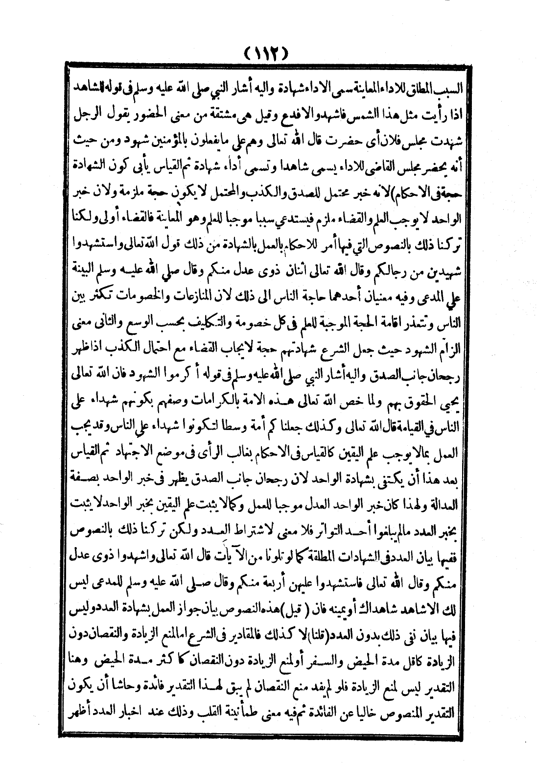 السَّبَبَ الْمُطْلَقَ لِلْأَدَاءِ الْمُعَايَنَةُ سُمِّيَ الْأَدَاءُ شَهَادَةً وَإِلَيْهِ أَشَارَ النَّبِيُّ - صَلَّى اللَّهُ عَلَيْهِ وَسَلَّمَ - فِي قَوْلِهِ لِلشَّاهِدِ «إذَا رَأَيْت مِثْلَ هَذِهِ الشَّمْسِ فَاشْهَدْ وَإِلَّا فَدَعْ» وَقِيلَ هِيَ مُشْتَقَّةٌ مِنْ مَعْنَى الْحُضُورِ يَقُولُ الرَّجُلُ شَهِدْت مَجْلِسَ فُلَانٍ أَيْ حَضَرْت قَالَ اللَّهُ تَعَالَى {وَهُمْ عَلَى مَا يَفْعَلُونَ بِالْمُؤْمِنِينَ شُهُودٌ} [البروج: 7] وَمِنْ حَيْثُ إنَّهُ يَحْضُرُ مَجْلِسَ الْقَاضِي لِلْأَدَاءِ يُسَمَّى شَاهِدًا وَتُسَمَّى أَدَاءَ شَهَادَةٍ، ثُمَّ الْقِيَاسُ يَأْبَى كَوْنَ الشَّهَادَةِ حُجَّةً فِي الْأَحْكَامِ)؛ لِأَنَّهُ خَبَرٌ مُحْتَمِلٌ لِلصِّدْقِ وَالْكَذِبِ وَالْمُحْتَمِلُ لَا يَكُونُ حُجَّةً مُلْزِمَةً، وَلِأَنَّ خَبَرَ الْوَاحِدِ لَا يُوجِبُ الْعِلْمَ وَالْقَضَاءُ مُلْزِمٌ فَيَسْتَدْعِي سَبَبًا مُوجِبًا لِلْعِلْمِ وَهُوَ الْمُعَايَنَةُ فَالْقَضَاءُ أَوْلَى. وَلَكِنَّا تَرَكْنَا ذَلِكَ بِالنُّصُوصِ الَّتِي فِيهَا أَمْرٌ لِلْأَحْكَامِ بِالْعَمَلِ بِالشَّهَادَةِ مِنْ ذَلِكَ قَوْلُ اللَّهِ تَعَالَى {وَاسْتَشْهِدُوا شَهِيدَيْنِ مِنْ رِجَالِكُمْ} [البقرة: 282]. وَقَالَ اللَّهُ تَعَالَى {اثْنَانِ ذَوَا عَدْلٍ مِنْكُمْ} [المائدة: 106] «. وَقَالَ - صَلَّى اللَّهُ عَلَيْهِ وَسَلَّمَ - الْبَيِّنَةُ عَلَى الْمُدَّعِي»، وَفِيهِ مَعْنَيَانِ أَحَدُهُمَا حَاجَةُ النَّاسِ إلَى ذَلِكَ؛ لِأَنَّ الْمُنَازَعَاتِ وَالْخُصُومَاتِ تَكْثُرُ بَيْنَ النَّاسِ وَتَتَعَذَّرُ إقَامَةُ الْحُجَّةِ الْمُوجِبَةِ لِلْعِلْمِ فِي كُلِّ خُصُومَةٍ وَالتَّكْلِيفُ بِحَسَبِ الْوُسْعِ وَالثَّانِي مَعْنَى إلْزَامِ الشُّهُودِ حَيْثُ جَعَلَ الشَّرْعُ شَهَادَتَهُمْ حُجَّةً لِإِيجَابِ الْقَضَاءِ مَعَ احْتِمَالِ الْكَذِبِ إذَا ظَهَرَ رُجْحَانُ جَانِبِ الصِّدْقِ وَإِلَيْهِ أَشَارَ النَّبِيُّ - صَلَّى اللَّهُ عَلَيْهِ وَسَلَّمَ - فِي قَوْله «أَكْرِمُوا الشُّهُودَ فَإِنَّ اللَّهَ تَعَالَى يُحْيِي الْحُقُوقَ بِهِمْ» وَلَمَّا خَصَّ اللَّهُ تَعَالَى هَذِهِ الْأُمَّةَ بِالْكَرَامَاتِ وَصَفَهُمْ بِكَوْنِهِمْ شُهَدَاءَ عَلَى النَّاسِ فِي الْقِيَامَةِ قَالَ اللَّهُ تَعَالَى {، وَكَذَلِكَ جَعَلْنَاكُمْ أُمَّةً وَسَطًا لِتَكُونُوا شُهَدَاءَ عَلَى النَّاسِ} [البقرة: 143]، وَقَدْ يَجِبُ الْعَمَلُ بِمَا لَا يُوجِبُ عِلْمَ الْيَقِينِ كَالْقِيَاسِ فِي الْأَحْكَامِ بِغَالِبِ الرَّأْيِ فِي مَوْضِعِ الِاجْتِهَادِ. ثُمَّ الْقِيَاسُ بَعْدَ هَذَا أَنْ يُكْتَفَى بِشَهَادَةِ الْوَاحِدِ؛ لِأَنَّ رُجْحَانَ جَانِبِ الصِّدْقِ يَظْهَرُ فِي خَبَرِ الْوَاحِدِ بِصِفَةِ الْعَدَالَةِ؛ وَلِهَذَا كَانَ خَبَرُ الْوَاحِدِ الْعَدْلِ مُوجِبًا لِلْعَمَلِ وَكَمَا لَا يَثْبُتُ عِلْمُ الْيَقِينِ بِخَبَرِ الْوَاحِدِ لَا يَثْبُتُ بِخَبَرِ الْعَدَدِ مَا لَمْ يَبْلُغُوا حَدَّ التَّوَاتُرِ فَلَا مَعْنَى لِاشْتِرَاطِ الْعَدَدِ، وَلَكِنْ تَرَكْنَا ذَلِكَ بِالنُّصُوصِ فَفِيهَا بَيَانُ الْعَدَدِ فِي الشَّهَادَاتِ الْمُطْلَقَةِ كَمَا لَوْ تَلَوْنَا مِنْ الْآيَاتِ قَالَ اللَّهُ تَعَالَى {وَأَشْهِدُوا ذَوَيْ عَدْلٍ مِنْكُمْ} [الطلاق: 2]. وَقَالَ اللَّهُ تَعَالَى {فَاسْتَشْهِدُوا عَلَيْهِنَّ أَرْبَعَةً مِنْكُمْ} [النساء: 15]. وَقَالَ - صَلَّى اللَّهُ عَلَيْهِ وَسَلَّمَ - «لِلْمُدَّعِي لَيْسَ لَك إلَّا شَاهِدٌ شَاهِدَاك أَوْ يَمِينُهُ» فَإِنْ (قِيلَ) هَذِهِ النُّصُوصُ بَيَانُ جَوَازِ الْعَمَلِ بِشَهَادَةِ الْعَدَدِ، وَلَيْسَ فِيهَا بَيَانُ نَفْيِ ذَلِكَ بِدُونِ الْعَدَدِ (قُلْنَا) لَا كَذَلِكَ فَالْمَقَادِيرُ فِي الشَّرْعِ إمَّا لِمَنْعِ الزِّيَادَةِ وَالنُّقْص