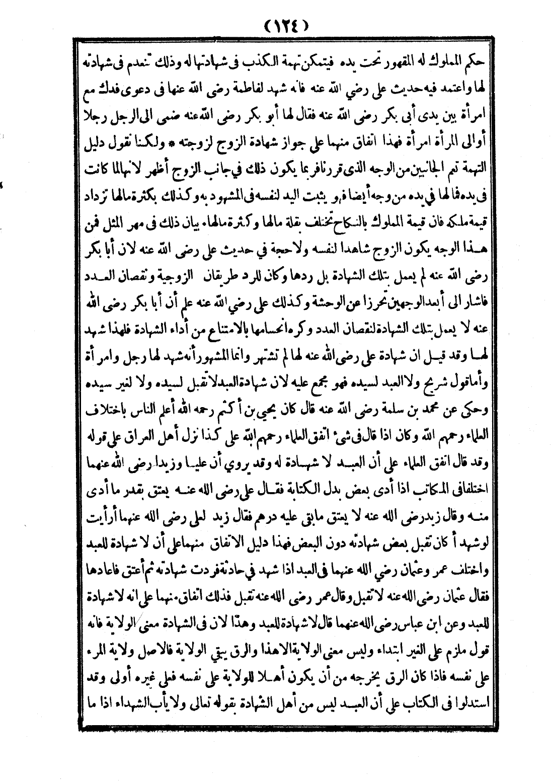 وَأَمَّا قَوْلُ شُرَيْحٍ وَلَا الْعَبْدُ لِسَيِّدِهِ فَهُوَ مَجْمَعٌ عَلَيْهِ؛ لِأَنَّ شَهَادَةَ الْعَبْدِ لَا تُقْبَلُ لِسَيِّدِهِ وَلَا لِغَيْرِ سَيِّدِهِ وَحُكِيَ عَنْ مُحَمَّدِ بْنِ سَلَمَةَ - رَضِيَ اللَّهُ عَنْهُ - قَالَ كَانَ يَحْيَى بْنُ أَكْثَمَ - رَحِمَهُ اللَّهُ - أَعْلَمَ النَّاسِ بِاخْتِلَافِ الْعُلَمَاءِ - رَحِمَهُمُ اللَّهُ - وَكَانَ إذَا قَالَ فِي شَيْءٍ اتَّفَقَ الْعُلَمَاءُ - رَحِمَهُمُ اللَّهُ - عَلَى كَذَا نَزَلَ أَهْلُ الْعِرَاقِ عَلَى قَوْلِهِ، وَقَدْ قَالَ اتَّفَقَ الْعُلَمَاءُ عَلَى أَنَّ الْعَبْدَ لَا شَهَادَةَ لَهُ، وَقَدْ يُرْوَى أَنَّ عَلِيًّا وَزَيْدًا - رَضِيَ اللَّهُ تَعَالَى عَنْهُمَا - اخْتَلَفَا فِي الْمُكَاتَبِ إذَا أَدَّى بَعْضَ بَدَلِ الْكِتَابَةِ فَقَالَ عَلِيٌّ - رَضِيَ اللَّهُ عَنْهُ - يُعْتَقُ بِقَدْرِ مَا أَدَّى مِنْهُ. وَقَالَ زَيْدٌ - رَضِيَ اللَّهُ عَنْهُ - لَا يُعْتَقُ مَا بَقِيَ عَلَيْهِ دِرْهَمٌ فَقَالَ زَيْدٌ لِعَلِيٍّ - رَضِيَ اللَّهُ تَعَالَى عَنْهُمَا - أَرَأَيْت لَوْ شَهِدَ أَكَانَ تُقْبَلُ بَعْضُ شَهَادَتِهِ دُونَ الْبَعْضِ فَهَذَا دَلِيلُ الِاتِّفَاقِ مِنْهُمَا عَلَى أَنْ لَا شَهَادَةَ لِلْعَبْدِ وَاخْتَلَفَ عُمَرُ وَعُثْمَانُ - رَضِيَ اللَّهُ تَعَالَى عَنْهُمَا - فِي الْعَبْدِ إذَا شَهِدَ فِي حَادِثَةٍ فَرُدَّتْ شَهَادَتُهُ، ثُمَّ أَعْتَقَ فَأَعَادَهَا فَقَالَ عُثْمَانُ - رَضِيَ اللَّهُ عَنْهُ - لَا تُقْبَلُ. وَقَالَ عُمَرُ - رَضِيَ اللَّهُ عَنْهُ - تُقْبَلُ فَذَلِكَ اتِّفَاقٌ مِنْهُمَا عَلَى أَنَّهُ لَا شَهَادَةَ لِلْعَبْدِ وَعَنْ ابْنِ عَبَّاسٍ - رَضِيَ اللَّهُ تَعَالَى عَنْهُمَا - قَالَ لَا شَهَادَةَ لِلْعَبْدِ، وَهَذَا؛ لِأَنَّ فِي الشَّهَادَةِ مَعْنَى الْوِلَايَةِ فَإِنَّهُ قَوْلٌ مُلْزِمٌ عَلَى الْغَيْرِ ابْتِدَاءً، وَلَيْسَ مَعْنَى الْوِلَايَةِ إلَّا هَذَا وَالرِّقُّ يُبْقِي الْوِلَايَةَ فَالْأَصْلُ وِلَايَةُ الْمَرْءِ عَلَى نَفْسِهِ. فَإِذَا كَانَ الرِّقُّ يُخْرِجُهُ مِنْ أَنْ يَكُونَ أَهْلًا لِلْوِلَايَةِ عَلَى نَفْسِهِ فَعَلَى غَيْرِهِ أَوْلَى، وَقَدْ اسْتَدَلُّوا فِي الْكِتَابِ عَلَى أَنَّ الْعَبْدَ لَيْسَ مِنْ أَهْلِ الشَّهَادَةِ بِقَوْلِهِ تَعَالَى {وَلَا يَأْبَ الشُّهَدَاءُ إذَا مَا