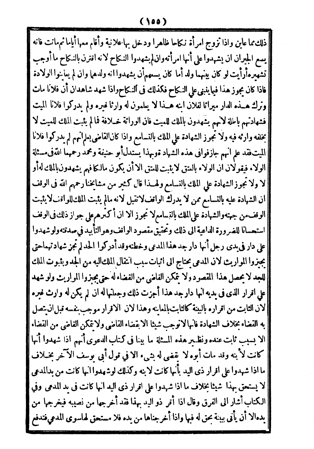 ذَلِكَ مِمَّا عَايَنَ. وَإِذَا تَزَوَّجَ امْرَأَةً نِكَاحًا ظَاهِرًا وَدَخَلَ بِهَا عَلَانِيَةً وَأَقَامَ مَعَهَا أَيَّامًا، ثُمَّ مَاتَتْ فَإِنَّهُ يَسَعُ الْجِيرَانَ أَنْ يَشْهَدُوا عَلَى أَنَّهَا امْرَأَتُهُ، وَإِنْ لَمْ يَشْهَدُوا النِّكَاحَ؛ لِأَنَّهُ اقْتَرَنَ بِالنِّكَاحِ مَا أَوْجَبَ تَشْهِيرَهُ أَرَأَيْت لَوْ كَانَ بَيْنَهُمَا وَلَدٌ أَمَا كَانَ يَسَعُهُمْ أَنْ يَشْهَدُوا أَنَّهُ وَلَدُهُمَا، وَإِنْ لَمْ يُعَايِنُوا الْوِلَادَةَ. فَإِذَا كَانَ يَجُوزُ هَذَا فِيمَا يَنْبَنِي عَلَى النِّكَاحِ. فَكَذَلِكَ فِي النِّكَاحِ.