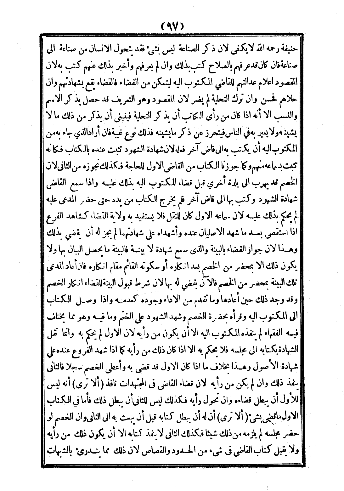 فَأَمَّا فِي الْكِتَابِ الْأَوَّلِ مَا قَضَى بِشَيْءٍ (أَلَا تَرَى) أَنَّ لَهُ أَنْ يُبْطِلَ كِتَابَهُ قَبْلَ أَنْ يَبْعَثَ بِهِ إلَى الثَّانِي، وَأَنَّ الْخَصْمَ لَوْ حَضَرَ مَجْلِسَهُ لَمْ يَلْزَمْهُ مِنْ ذَلِكَ شَيْءٌ. فَكَذَلِكَ الثَّانِي لَا يَنْفُذُ كِتَابُهُ إلَّا أَنْ يَكُونَ ذَلِكَ مِنْ رَأْيِهِ