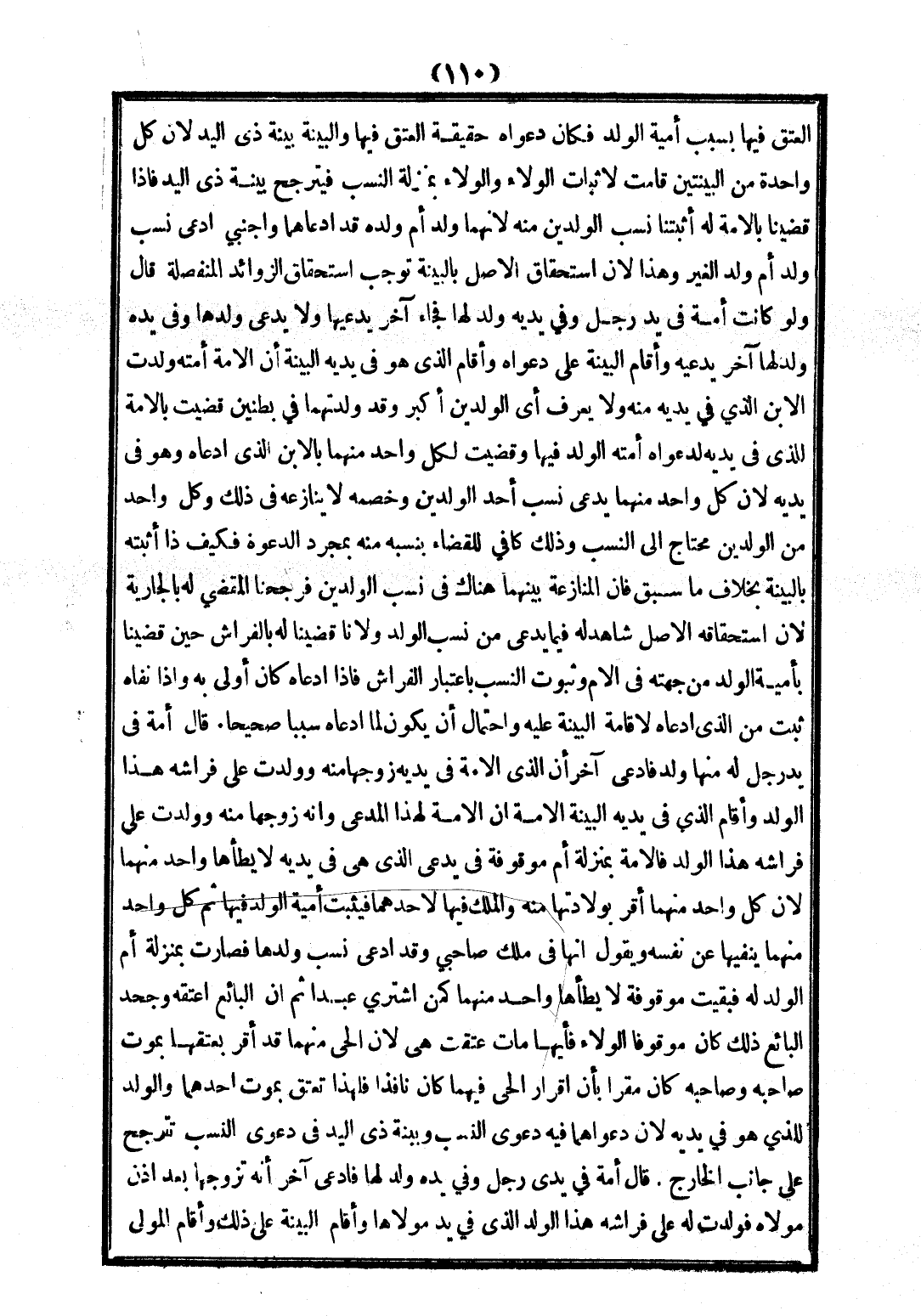 قَالَ أَمَةٌ فِي يَدِ رَجُلٍ لَهُ مِنْهَا وَلَدٌ فَادَّعَى آخَرُ أَنَّ الَّذِي الْأَمَةُ فِي يَدَيْهِ زَوْجُهَا مِنْهُ، وَوَلَدَتْ عَلَى فِرَاشِهِ هَذَا الْوَلَدَ، وَأَقَامَ الَّذِي فِي يَدَيْهِ الْأَمَةُ الْبَيِّنَةَ أَنَّ الْأَمَةَ لِهَذَا الْمُدَّعِي، وَأَنَّهُ زَوَّجَهَا مِنْهُ وَوَلَدَتْ عَلَى فِرَاشِهِ هَذَا الْوَلَدَ فَالْأَمَةُ بِمَنْزِلَةِ أُمٍّ مَوْقُوفَةٍ فِي يَدِ الَّذِي هِيَ فِي يَدَيْهِ لَا يَطَؤُهَا وَاحِدٌ مِنْهُمَا؛ لِأَنَّ كُلَّ وَاحِدٍ مِنْهُمَا أَقَرَّ بِوِلَادَتِهَا مِنْهُ وَالْمِلْكُ فِيهَا لِأَحَدِهِمَا فَيُثْبِتُ أُمِّيَّةَ الْوَلَدِ فِيهَا، ثُمَّ كُلُّ وَاحِدٍ مِنْهُمَا يَنْفِيهَا عَنْ نَفْسِهِ وَيَقُولُ: إنَّهَا فِي مِلْكِ صَاحِبِي، وَقَدْ ادَّعَى نَسَبَ وَلَدِهَا فَصَارَتْ بِمَنْزِلَةِ أُمِّ الْوَلَدِ لَهُ فَبَقِيَتْ مَوْقُوفَةً لَا يَطَؤُهَا وَاحِدٌ مِنْهُمَا كَمَنْ اشْتَرَى عَبْدًا، ثُمَّ أَنَّ الْبَائِعَ أَعْتَقَهُ وَجَحَدَ الْبَائِعُ ذَلِكَ كَانَ مَوْقُوفَ الْوَلَاءِ فَأَيُّهُمَا مَاتَ عَتَقَتْ هِيَ؛ لِأَنَّ الْحَيَّ مِنْهُمَا قَدْ أَقَرَّ بِعِتْقِهَا بِمَوْتِ صَاحِبِهِ، وَصَاحِبُهُ كَانَ مُقِرًّا بِأَنَّ إقْرَارَ الْحَيِّ فِيهِمَا كَانَ نَافِذًا فَلِهَذَا تُعْتَقُ بِمَوْتِ أَحَدِهِمَا وَالْوَلَدُ لِلَّذِي هُوَ فِي يَدَيْهِ؛ لِأَنَّ دَعْوَاهُمَا فِيهِ دَعْوَى النَّسَبِ وَبَيِّنَةُ ذِي الْيَدِ فِي دَعْوَى النَّسَبِ تَتَرَجَّحُ عَلَى جَانِبِ الْخَارِجِ