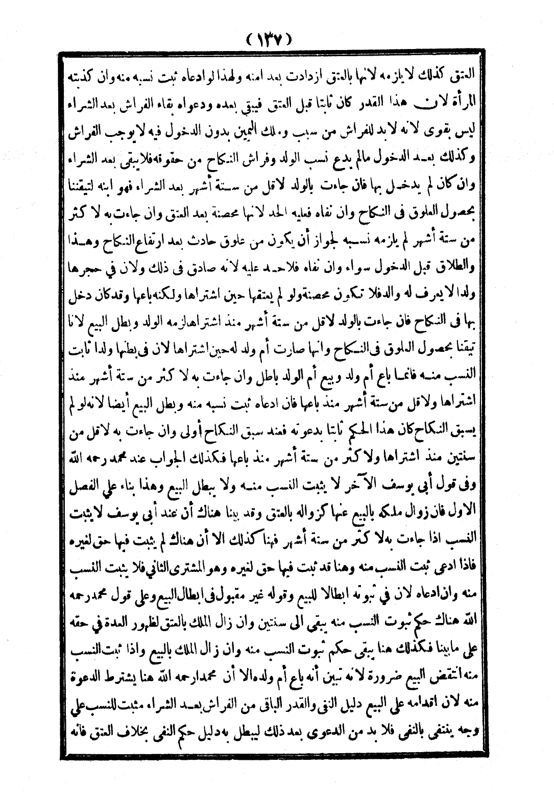الْعِتْقِ كَذَلِكَ لَا يَلْزَمُهُ؛ لِأَنَّهَا بِالْعِتْقِ ازْدَادَتْ بُعْدًا مِنْهُ؛ وَلِهَذَا لَوْ ادَّعَاهُ ثَبَتَ نَسَبُهُ مِنْهُ، وَإِنْ كَذَّبَتْهُ الْمَرْأَةُ؛ لِأَنَّ هَذَا الْقَدْرَ كَانَ ثَابِتًا قَبْلَ الْعِتْقِ فَيَبْقَى بَعْدَهُ وَدَعْوَاهُ بَقَاءَ الْفِرَاشِ بَعْدَ الشِّرَاءِ لَيْسَ بِقَوِيٍّ؛ لِأَنَّهُ لَا بُدَّ لِلْفِرَاشِ مِنْ سَبَبٍ وَمِلْكُ الْيَمِينِ بِدُونِ الدُّخُولِ فِيهِ لَا يُوجِبُ الْفِرَاشَ، وَكَذَلِكَ بَعْدَ الدُّخُولِ مَا لَمْ يَدَّعِ نَسَبَ الْوَلَدِ، وَفِرَاشُ النِّكَاحِ مِنْ حُقُوقِهِ فَلَا يَبْقَى بَعْدَ الشِّرَاءِ، وَإِنْ كَانَ لَمْ يَدْخُلْ بِهَا فَإِنْ جَاءَتْ بِالْوَلَدِ لِأَقَلَّ مِنْ سِتَّةِ أَشْهُرٍ بَعْدَ الشِّرَاءِ فَهُوَ ابْنُهُ لِتَيَقُّنِنَا بِحُصُولِ الْعُلُوقِ فِي النِّكَاحِ، وَإِنْ نَفَاهُ فَعَلَيْهِ الْحَدُّ؛ لِأَنَّهَا مُحْصَنَةٌ بَعْدَ الْعِتْقِ.