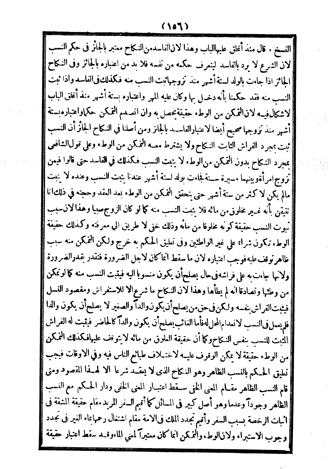 النُّسَخِ قَالَ: مُنْذُ أَغْلَقَ عَلَيْهَا الْبَابَ؛ وَهَذَا لِأَنَّ الْفَاسِدَ مِنْ النِّكَاحِ مُعْتَبَرٌ بِالْجَائِزِ فِي حُكْمِ النَّسَبِ؛ لِأَنَّ الشَّرْعَ لَا يُرَدُّ بِالْفَاسِدِ لِيَتَعَرَّفَ حُكْمَهُ مِنْ نَفْسِهِ فَلَا بُدَّ مِنْ اعْتِبَارِهِ بِالْجَائِزِ وَفِي النِّكَاحِ الْجَائِزِ إذَا جَاءَتْ بِالْوَلَدِ لِسِتَّةِ أَشْهُرٍ مُنْذُ تَزَوَّجَهَا ثَبَتَ النَّسَبُ مِنْهُ فَكَذَلِكَ فِي الْفَاسِدِ، وَإِذَا ثَبَتَ النَّسَبُ مِنْهُ فَقَدْ حَكَمْنَا بِأَنَّهُ دَخَلَ بِهَا، وَكَانَ عَلَيْهِ الْمَهْرُ وَاعْتِبَارُهُ بِسِتَّةِ أَشْهُرٍ مُنْذُ أَغْلَقَ الْبَابَ لَا إشْكَالَ فِيهِ؛ لِأَنَّ التَّمَكُّنَ مِنْ الْوَطْءِ حَقِيقَةٌ يَحْصُلُ بِهِ، وَإِنْ انْعَدَمَ التَّمَكُّنُ حُكْمًا وَاعْتِبَارُهُ بِسِتَّةِ أَشْهُرٍ مُنْذُ تَزَوَّجَهَا صَحِيحٌ أَيْضًا لِاعْتِبَارِ الْفَاسِدِ بِالْجَائِزِ، وَمِنْ أَصْلِنَا فِي النِّكَاحِ الْجَائِزَ أَنَّ النَّسَبَ ثَبَتَ بِمُجَرَّدِ الْفِرَاشِ الثَّابِتِ النِّكَاحِ، وَلَا يُشْتَرَطُ مَعَهُ التَّمَكُّنُ مِنْ الْوَطْءِ، وَعَلَى قَوْلِ الشَّافِعِيِّ بِمُجَرَّدِ النِّكَاحِ بِدُونِ التَّمَكُّنِ مِنْ الْوَطْءِ لَا يَثْبُتُ النَّسَبُ فَكَذَلِكَ فِي الْفَاسِدِ حَتَّى قَالُوا فِيمَنْ تَزَوَّجَ امْرَأَةً، وَبَيْنَهُمَا مَسِيرَةُ سَنَةٍ فَجَاءَتْ بِوَلَدٍ لِسِتَّةِ أَشْهُرٍ عِنْدَنَا يَثْبُتُ النَّسَبُ، وَعِنْدَهُ لَا يَثْبُتُ مَا لَمْ يَكُنْ لِأَكْثَرَ مِنْ سِتَّةِ أَشْهُرٍ حَتَّى يَتَحَقَّقَ التَّمَكُّنُ مِنْ الْوَطْءِ بَعْدَ الْعَقْدِ.