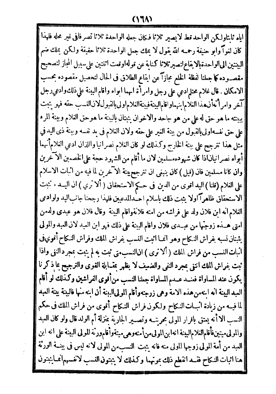 (قُلْنَا): الْيَدُ أَقْوَى مِنْ الدِّينِ فِي حُكْمِ الِاسْتِحْقَاقِ (أَلَا تَرَى) أَنَّ الْيَدَ تُثْبِتُ الِاسْتِحْقَاقَ ظَاهِرًا وَلَا يَثْبُتُ ذَلِكَ بِإِسْلَامِ أَحَدِ الْمُدَّعِيَيْنِ فَلِهَذَا رَجَّحْنَا جَانِبَ الْيَدِ، وَلَوْ ادَّعَى الْغُلَامُ أَنَّهُ ابْنُ فُلَانٍ وُلِدَ عَلَى فِرَاشِهِ مِنْ أَمَتِهِ فُلَانَةَ، وَأَقَامَ الْبَيِّنَةَ، وَقَالَ فُلَانٌ هُوَ عَبْدِي وُلِدَ مِنْ أَمَتِي هَذِهِ زَوَّجْتُهَا مِنْ عَبْدِي فُلَانٍ، وَأَقَامَ الْبَيِّنَةَ عَلَى ذَلِكَ فَهُوَ ابْنُ الْعَبْدِ؛ لِأَنَّ الْعَبْدَ وَالْمَوْلَى يُثْبِتَانِ نَسَبُهُ بِفِرَاشِ النِّكَاحِ.