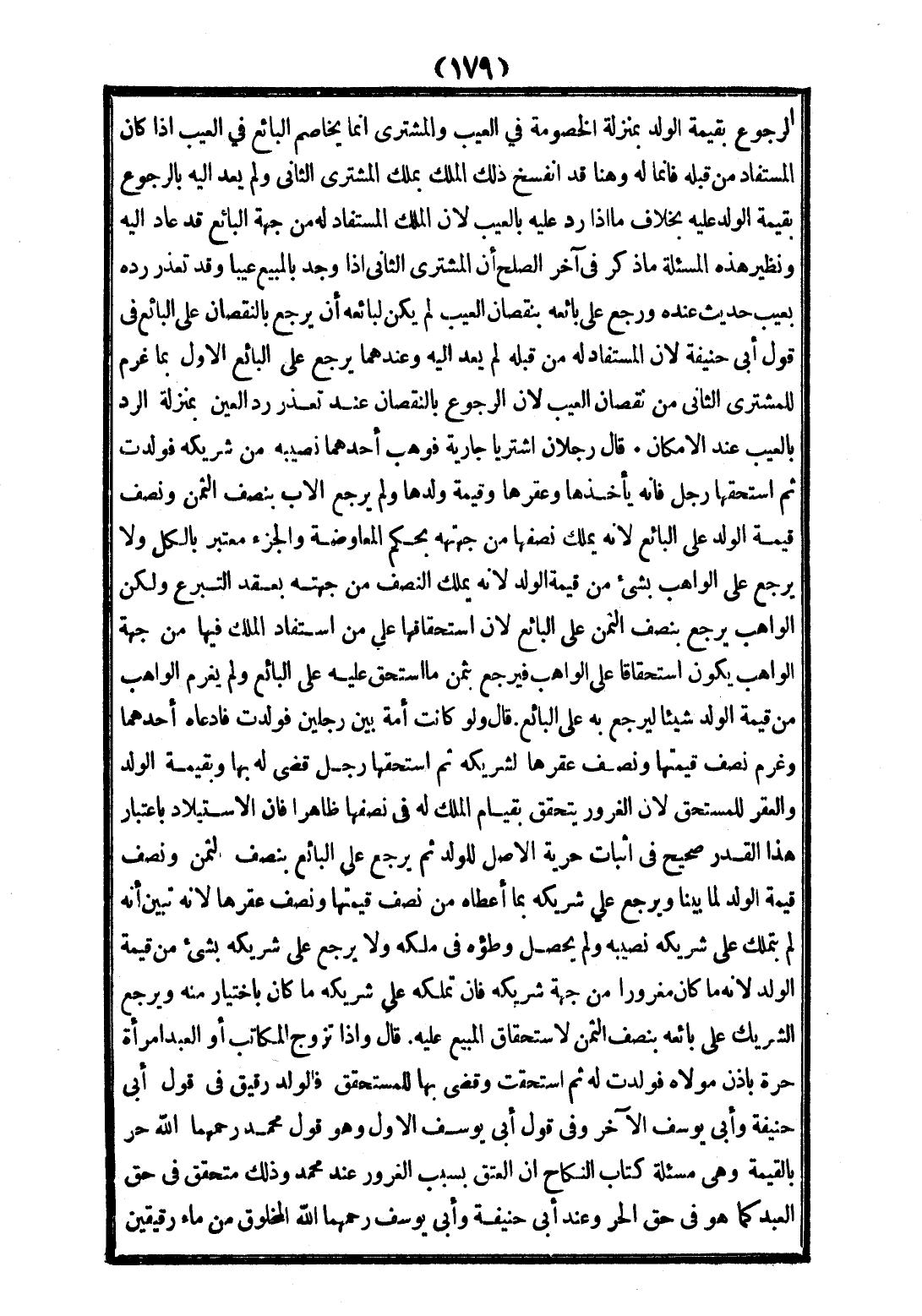 الرُّجُوعَ بِقِيمَةِ الْوَلَدِ بِمَنْزِلَةِ الْخُصُومَةِ فِي الْعَيْبِ، وَالْمُشْتَرِي إنَّمَا يُخَاصِمُ الْبَائِعَ فِي الْعَيْبِ إذَا كَانَ الْمُسْتَفَادُ مِنْ قِبَلِهِ فَإِنَّمَا لَهُ، وَهُنَا قَدْ انْفَسَخَ ذَلِكَ الْمِلْكُ بِمِلْكِ الْمُشْتَرِي الثَّانِي وَلَمْ يَعُدْ إلَيْهِ بِالرُّجُوعِ بِقِيمَةِ الْوَلَدِ عَلَيْهِ بِخِلَافِ مَا إذَا رُدَّ عَلَيْهِ بِالْعَيْبِ؛ لِأَنَّ الْمِلْكَ الْمُسْتَفَادَ لَهُ مِنْ جِهَةِ الْبَائِعِ قَدْ عَادَ إلَيْهِ، وَنَظِيرُ هَذِهِ الْمَسْأَلَةِ مَا ذَكَرَ فِي آخِرِ الصُّلْحِ أَنَّ الْمُشْتَرِيَ الثَّانِيَ إذَا وَجَدَ بِالْبَيْعِ عَيْبًا، وَقَدْ تَعَذَّرَ رَدُّهُ بِعَيْبٍ حَدِيثٍ عِنْدَهُ وَرَجَعَ عَلَى بَائِعِهِ بِنُقْصَانِ الْعَيْبِ لَمْ يَكُنْ لِبَائِعِهِ أَنْ يَرْجِعَ بِالنُّقْصَانِ عَلَى الْبَائِعِ فِي قَوْلِ أَبِي حَنِيفَةَ؛ لِأَنَّ الْمُسْتَفَادَ لَهُ مِنْ قِبَلِهِ لَمْ يَعُدْ إلَيْهِ، وَعِنْدَهُمَا يَرْجِعُ عَلَى الْبَائِعِ الْأَوَّلِ بِمَا غَرِمَ لِلْمُشْتَرِي الثَّانِي مِنْ نُقْصَانِ الْعَيْبِ؛ لِأَنَّ الرُّجُوعَ بِالنُّقْصَانِ عِنْدَ تَعَذُّرِ رَدِّ الْعَيْنِ بِمَنْزِلَةِ الرَّدِّ بِالْعَيْبِ عِنْدَ الْإِمْكَانِ