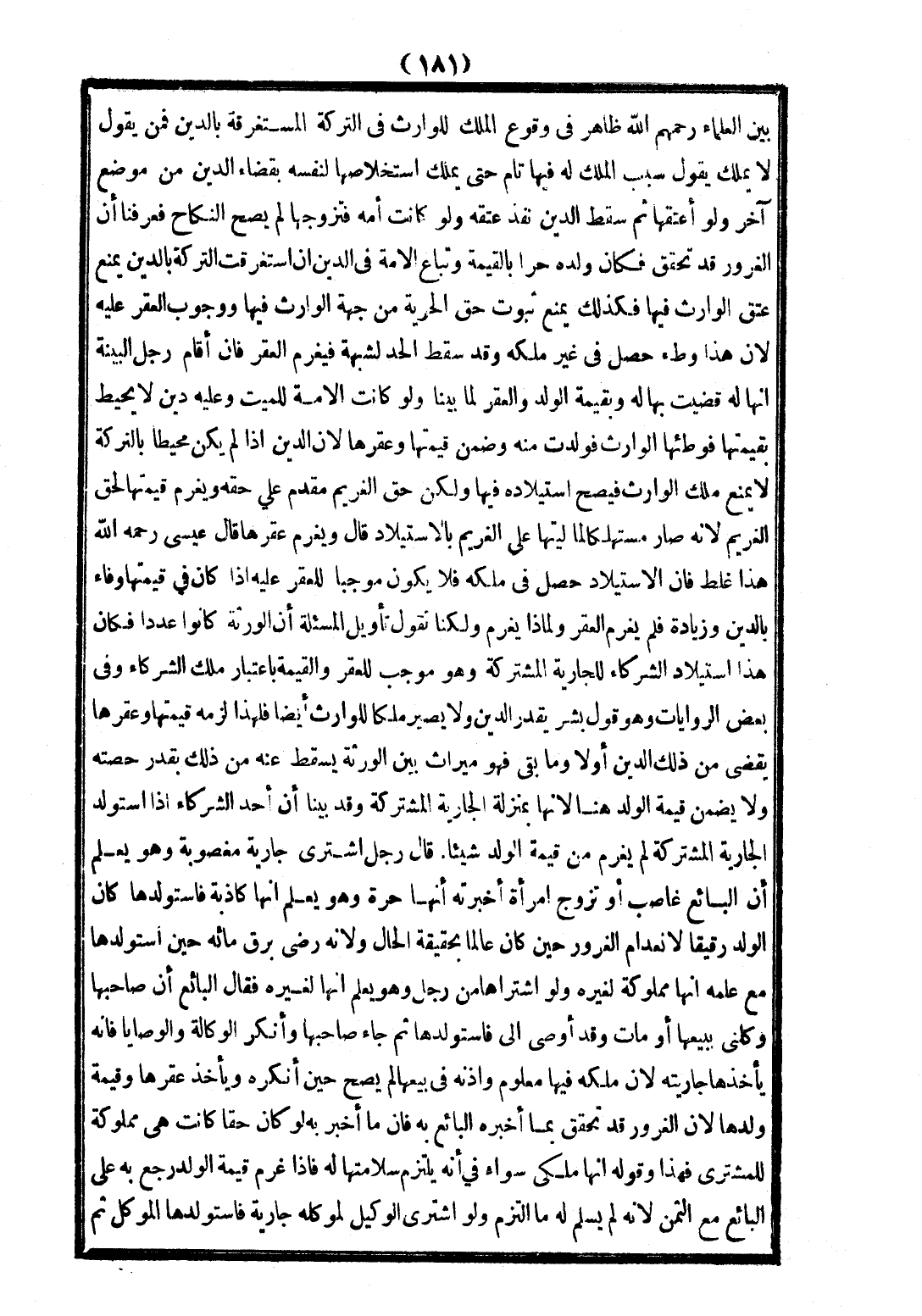 وَلَكِنَّا نَقُولُ: تَأْوِيلُ الْمَسْأَلَةِ أَنَّ الْوَرَثَةَ كَانُوا عَدَدًا فَكَانَ هَذَا اسْتِيلَادَ الشُّرَكَاءِ لِلْجَارِيَةِ الْمُشْتَرَكَةِ، وَهُوَ مُوجِبٌ لِلْعُقْرِ وَالْقِيمَةِ بِاعْتِبَارِ مِلْكِ الشُّرَكَاءِ، وَفِي بَعْضِ الرِّوَايَاتِ، وَهُوَ قَوْلُ بِشْرٍ يُقَدَّرُ الدَّيْنُ، وَلَا يَصِيرُ مِلْكًا لِلْوَارِثِ أَيْضًا فَلِهَذَا لَزِمَهُ قِيمَتُهَا، وَعُقْرُهَا يُقْضَى مِنْ ذَلِكَ الدَّيْنِ أَوَّلًا، وَمَا بَقِيَ فَهُوَ مِيرَاثٌ بَيْنَ الْوَرَثَةِ يَسْقُطُ عَنْهُ مِنْ ذَلِكَ بِقَدْرِ حِصَّتِهِ، وَلَا يَضْمَنُ قِيمَةَ الْوَلَدِ هُنَا؛ لِأَنَّهَا بِمَنْزِلَةِ الْجَارِيَةِ الْمُشْتَرَكَةِ، وَقَدْ بَيَّنَّا أَنَّ أَحَدَ الشُّرَكَاءِ إذَا اسْتَوْلَدَ الْجَارِيَةَ الْمُشْتَرَكَةَ لَمْ يَغْرَمْ مِنْ قِيمَةِ الْوَلَدِ شَيْئًا