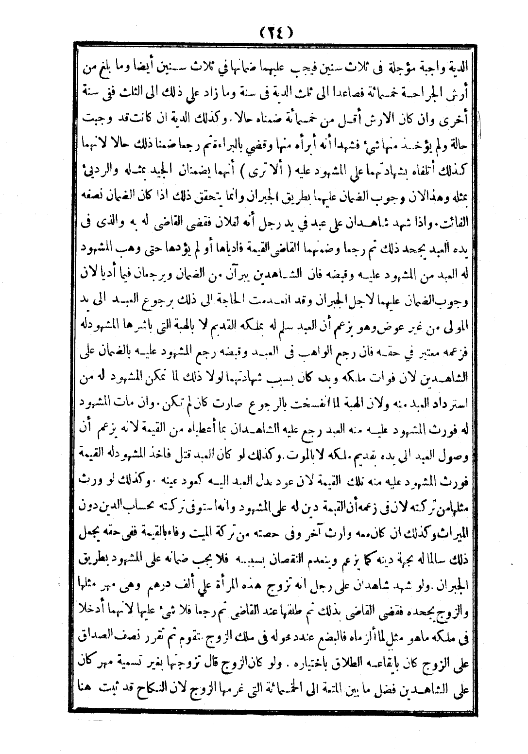 وَكَذَلِكَ لَوْ وَرِثَ مِثْلَهَا مِنْ تَرِكَتِهِ؛ لِأَنَّ فِي زَعْمِهِ أَنَّ الْقِيمَةَ دَيْنٌ لَهُ عَلَى الْمَشْهُودِ وَأَنَّهُ اسْتَوْفَى تَرِكَتَهُ بِحِسَابِ الدَّيْنِ دُونَ الْمِيرَاثِ وَكَذَلِكَ إنْ كَانَ مَعَهُ وَارِثٌ آخَرُ وَفِي حِصَّتِهِ مِنْ تَرِكَةِ الْمَيِّتِ وَفَاءٌ بِالْقِيمَةِ فَفِي حَقِّهِ يُجْعَلُ ذَلِكَ سَالِمًا لَهُ بِجِهَةِ دَيْنِهِ كَمَا يَزْعُمُ وَيَنْعَدِمُ النُّقْصَانُ بِسَبَبِهِ فَلَا يَجِبُ ضَمَانُهُ عَلَى الْمَشْهُودِ بِطَرِيقِ الْجُبْرَانِ