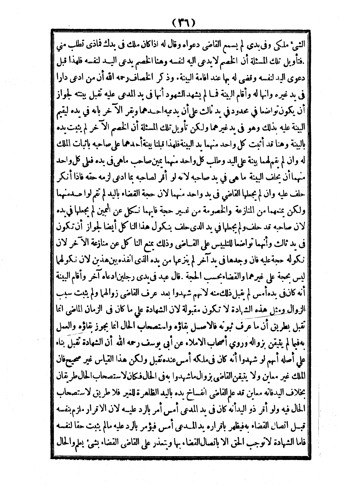 الشَّيْءُ مِلْكِي وَفِي يَدِي لَمْ يَسْمَعْ الْقَاضِي دَعْوَاهُ وَقَالَ لَهُ إذَا كَانَ مِلْكٌ فِي يَدِكَ فَمَاذَا تَطْلُبُ مِنِّي فَتَأْوِيلُ تِلْكَ الْمَسْأَلَةِ أَنَّ الْخَصْمَ لَا يَدَّعِي إلَيْهِ الْيَدَ لِنَفْسِهِ وَهُنَا الْخَصْمُ يَدَّعِي الْيَدَ لِنَفْسِهِ فَلِهَذَا قَبِلَ دَعْوَى الْيَدِ لِنَفْسِهِ وَقَضَى لَهُ بِهَا عِنْدَ إقَامَةِ الْبَيِّنَةِ.