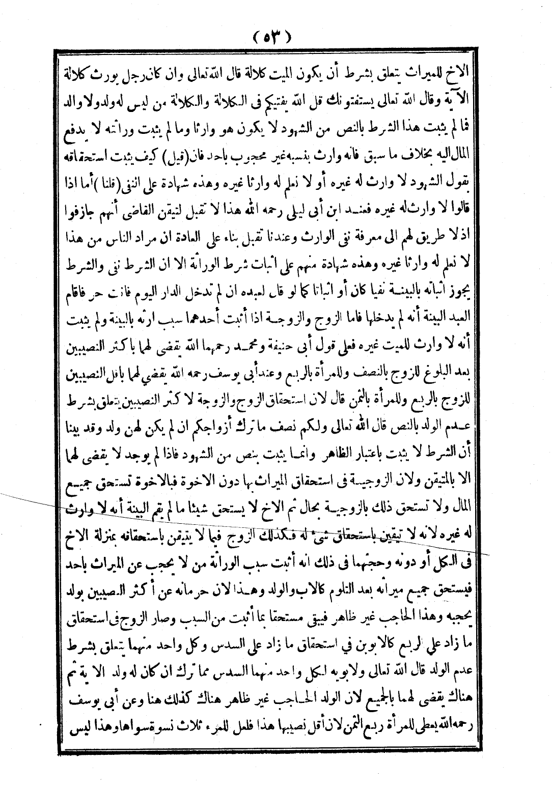 الْأَخِ لِلْمِيرَاثِ يَتَعَلَّقُ بِشَرْطِ أَنْ يَكُونَ الْمَيِّتُ كَلَالَةً؛ قَالَ اللَّهُ تَعَالَى {وَإِنْ كَانَ رَجُلٌ يُورَثُ كَلَالَةً} [النساء: 12] الْآيَةَ وَقَالَ اللَّهُ تَعَالَى {يَسْتَفْتُونَكَ قُلْ اللَّهُ يُفْتِيكُمْ فِي الْكَلَالَةِ} [النساء: 176] وَالْكَلَالَةُ مَنْ لَيْسَ لَهُ وَلَدٌ وَلَا وَالِدٌ فَمَا لَمْ يَثْبُتْ هَذَا الشَّرْطُ بِالنَّصِّ مِنْ الشُّهُودِ لَا يَكُونُ هُوَ وَارِثًا وَمَا لَمْ يُثْبِتْ وِرَاثَتَهُ لَا يُدْفَعُ الْمَالُ إلَيْهِ بِخِلَافِ مَا سَبَقَ فَإِنَّهُ وَارِثٌ بِنَسَبِهِ غَيْرُ مَحْجُوبٍ بِأَحَدٍ.