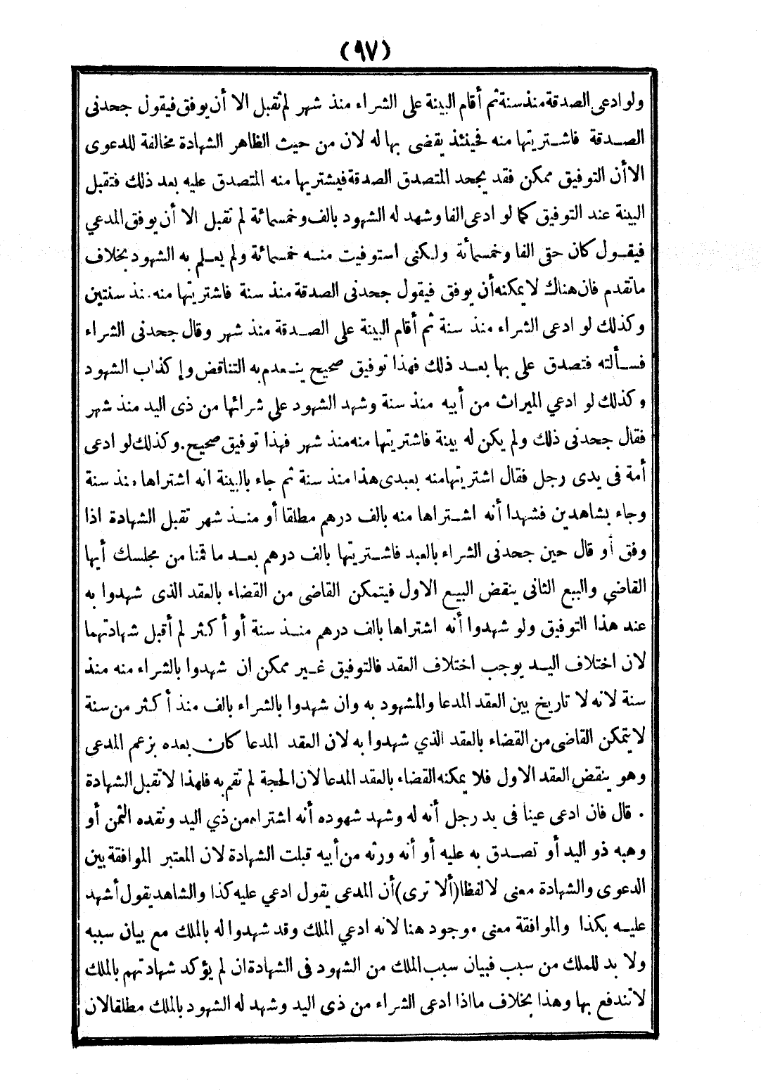 وَكَذَلِكَ لَوْ ادَّعَى أَمَةً فِي يَدَيْ رَجُلٍ فَقَالَ اشْتَرَيْتهَا مِنْهُ بِعَبْدِي هَذَا مُنْذُ سَنَةٍ، ثُمَّ جَاءَ بِالْبَيِّنَةِ أَنَّهُ اشْتَرَاهَا مُنْذُ سَنَةٍ وَجَاءَ بِشَاهِدَيْنِ فَشَهِدَا أَنَّهُ اشْتَرَاهَا مِنْهُ بِأَلْفِ دِرْهَمٍ مُطْلَقًا أَوْ مُنْذُ شَهْرٍ تُقْبَلُ الشَّهَادَةُ إذَا وَفَّقَ أَوْ قَالَ حِينَ جَحَدَنِي الشِّرَاءَ بِالْعَبْدِ فَاشْتَرَيْتهَا بِأَلْفِ دِرْهَمٍ بَعْدَمَا قُمْنَا مِنْ مَجْلِسِك أَيُّهَا الْقَاضِي وَالْبَيْعُ الثَّانِي يَنْقُضُ الْبَيْعَ الْأَوَّلَ فَيَتَمَكَّنُ الْقَاضِي مِنْ الْقَضَاءِ بِالْعَقْدِ الَّذِي شَهِدُوا بِهِ عِنْدَ هَذَا التَّوْفِيقِ، وَلَوْ شَهِدُوا أَنَّهُ اشْتَرَاهَا بِأَلْفِ دِرْهَمٍ مُنْذُ سَنَةٍ أَوْ أَكْثَرَ لَمْ أَقْبَلْ شَهَادَتَهُمَا؛ لِأَنَّ اخْتِلَافَ الْيَدِ يُوجِبُ اخْتِلَافَ الْعَقْدِ فَالتَّوْفِيقُ غَيْرُ مُمْكِنٍ إنْ شَهِدُوا بِالشِّرَاءِ مِنْهُ مُنْذُ سَنَةٍ؛ لِأَنَّهُ لَا تَارِيخَ بَيْنَ الْعَقْدِ الْمُدَّعَى، وَالْمَشْهُودِ بِهِ، وَإِنْ شَهِدُوا بِالشِّرَاءِ بِأَلْفٍ مُنْذُ أَكْثَرَ مِنْ سَنَةٍ لَا يَتَمَكَّنُ الْقَاضِي مِنْ الْقَضَاءِ بِالْعَقْدِ الَّذِي شَهِدُوا بِهِ؛ لِأَنَّ الْعَقْدَ الْمُدَّعَى كَانَ بَعْدَهُ بِزَعْمِ الْمُدَّعِي، وَهُوَ يَنْقُضُ الْعَقْدَ الْأَوَّلَ فَلَا يُمْكِنُهُ الْقَضَاءُ بِالْعَقْدِ الْمُدَّعَى؛ لِأَنَّ الْحُجَّةَ لَمْ تَقُمْ بِهِ فَلِهَذَا لَا تُقْبَلُ الشَّهَادَةُ