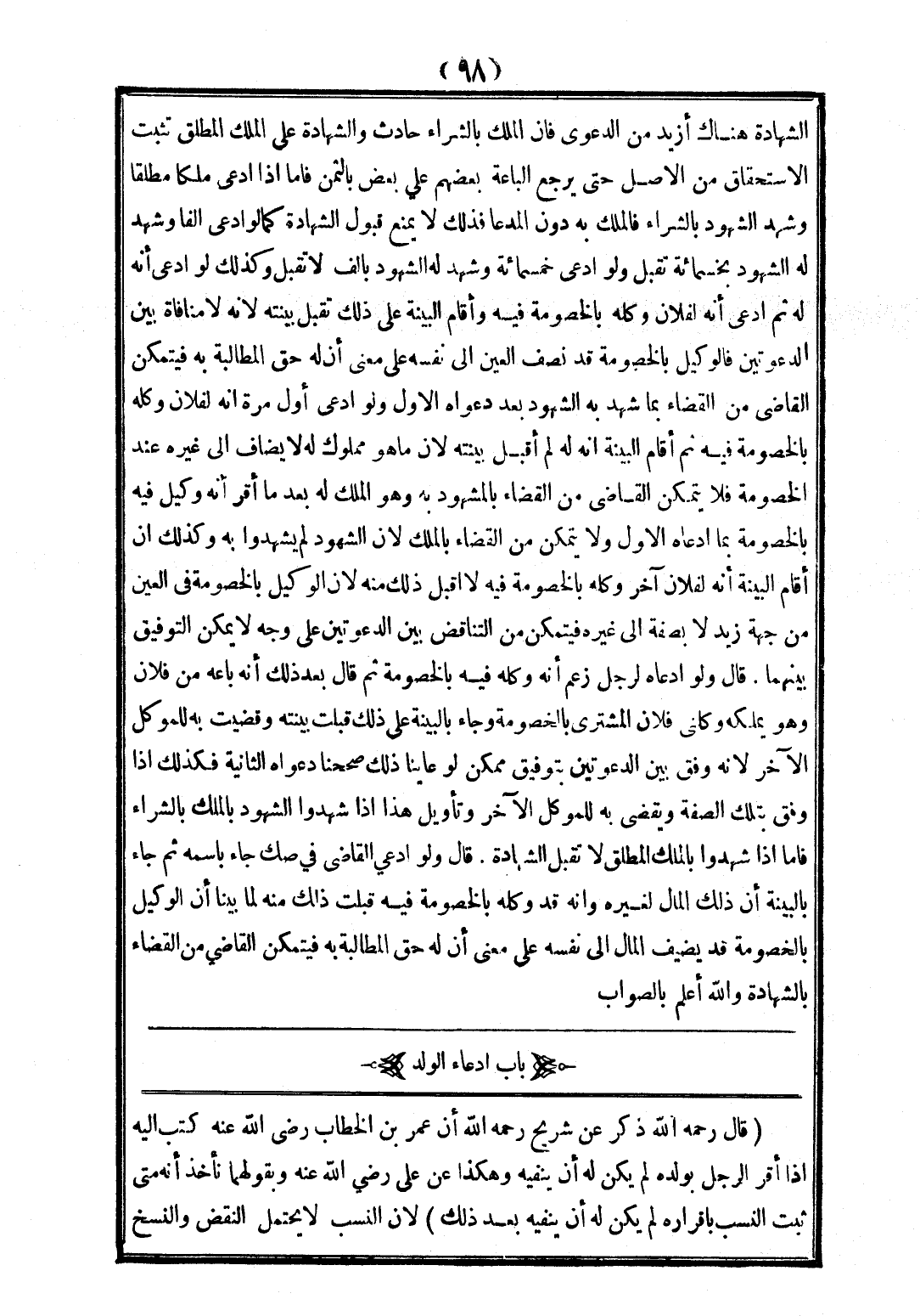 (بَابُ ادِّعَاءِ الْوَلَدِ) (قَالَ - رَحِمَهُ اللَّهُ - ذُكِرَ عَنْ شُرَيْحٍ - رَحِمَهُ اللَّهُ - أَنَّ عُمَرَ بْنَ الْخَطَّابِ - رَضِيَ اللَّهُ عَنْهُ - كَتَبَ إلَيْهِ إذَا أَقَرَّ الرَّجُلُ بِوَلَدِهِ لَمْ يَكُنْ لَهُ أَنْ يَنْفِيَهُ، وَهَكَذَا عَنْ عَلِيٍّ - رَضِيَ اللَّهُ عَنْهُ - وَبِقَوْلِهِمَا نَأْخُذُ أَنَّهُ مَتَى ثَبَتَ النَّسَبُ بِإِقْرَارِهِ لَمْ يَكُنْ لَهُ أَنْ يَنْفِيَهُ بَعْدَ ذَلِكَ)؛ لِأَنَّ النَّسَبَ لَا يَحْتَمِلُ النَّقْضَ وَالنَّسْخَ
