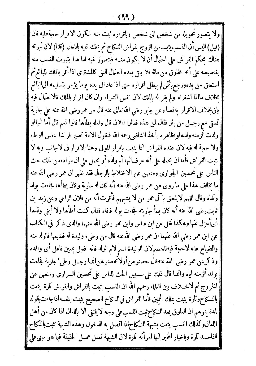 فَأَمَّا أَنْ يَحْمِلَهُ عَلَى أَنَّهُ عَرَفَ أَنَّهَا أُمُّ، وَلَدِهِ أَوْ يَحْمِلَهُ عَلَى أَنَّ مُرَادَهُ مِنْ ذَلِكَ حَثُّ النَّاسِ عَلَى تَحْصِينِ الْجَوَارِي، وَمَنْعِهِنَّ عَنْ الِاخْتِلَاطِ بِالرِّجَالِ فَقَدْ ظَهَرَ عَنْ عُمَرَ - رَضِيَ اللَّهُ عَنْهُ - مَا يُخَالِفُ هَذَا عَلَى مَا رُوِيَ عَنْ عُمَرَ - رَضِيَ اللَّهُ عَنْهُ - أَنَّهُ كَانَ لَهُ جَارِيَةٌ، وَكَانَ يَطَؤُهَا فَجَاءَتْ بِوَلَدٍ وَنَفَاهُ، وَقَالَ اللَّهُمَّ لَا يُلْحَقُ بِآلِ عُمَرَ مَنْ لَا يُشْبِهُهُمْ فَأَقَرَّتْ أَنَّهُ مِنْ فُلَانٍ الرَّاعِي.