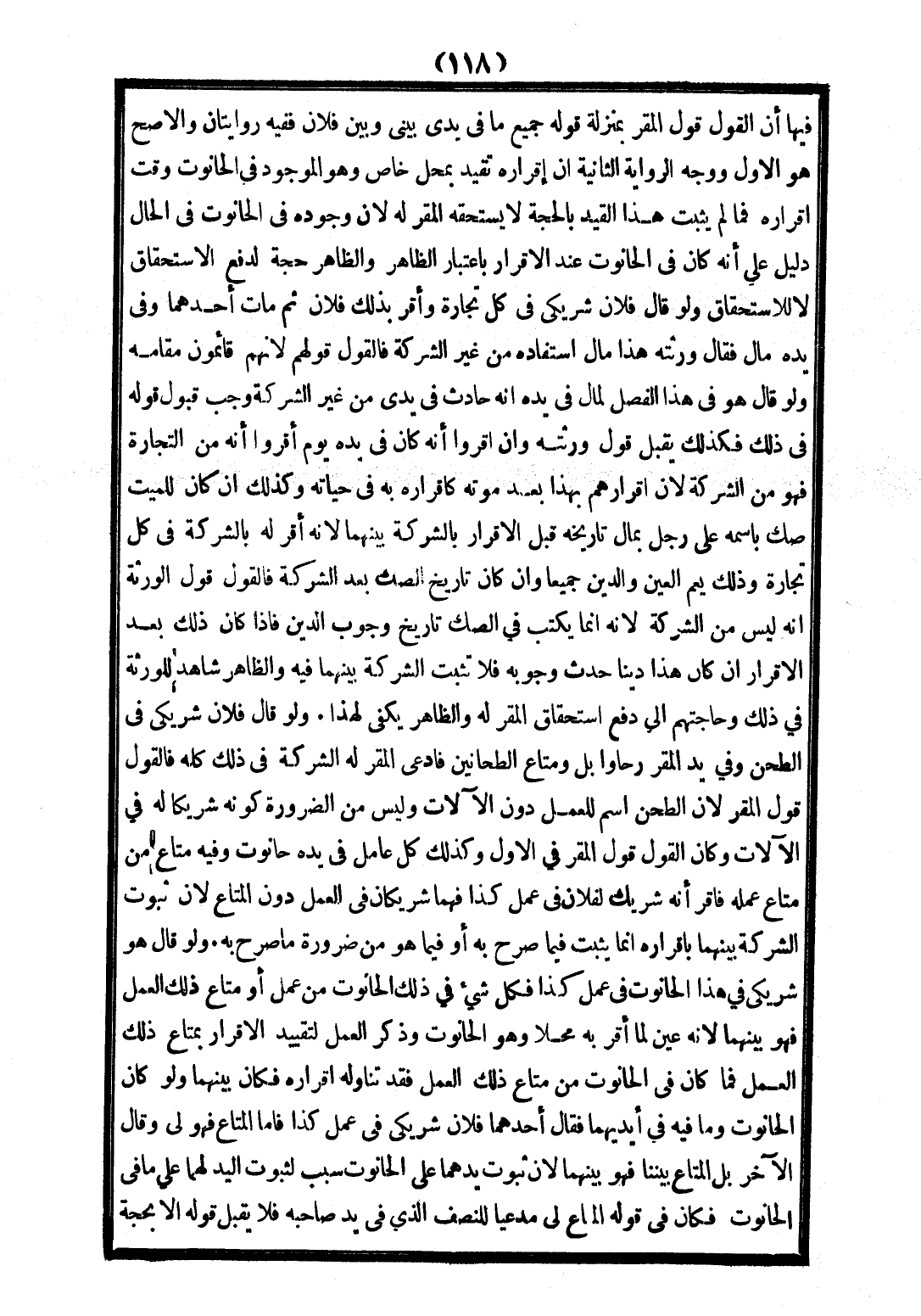 فِيهَا أَنَّ الْقَوْلَ قَوْلُ الْمُقِرِّ بِمَنْزِلَةِ قَوْلِهِ جَمِيعُ مَا فِي يَدِي بَيْنِي وَبَيْنَ فُلَانٍ فَفِيهِ رِوَايَتَانِ، وَالْأَصَحُّ هُوَ الْأَوَّلُ وَوَجْهُ الرِّوَايَةِ الثَّانِيَةِ أَنَّ إقْرَارَهُ تَقَيَّدَ بِمَحَلٍّ خَاصٍّ، وَهُوَ الْمَوْجُودُ فِي الْحَانُوتِ وَقْتَ إقْرَارِهِ فَمَا لَمْ يَثْبُتْ هَذَا الْقَيْدُ بِالْحُجَّةِ لَا يَسْتَحِقُّهُ الْمُقَرُّ لَهُ لِأَنَّ وُجُودَهُ فِي الْحَانُوتِ فِي الْحَالِ دَلِيلٌ عَلَى أَنَّهُ كَانَ فِي الْحَانُوتِ عِنْدَ الْإِقْرَارِ بِاعْتِبَارِ الظَّاهِرِ وَالظَّاهِرُ حُجَّةٌ لِدَفْعِ الِاسْتِحْقَاقِ لَا لِلِاسْتِحْقَاقِ.