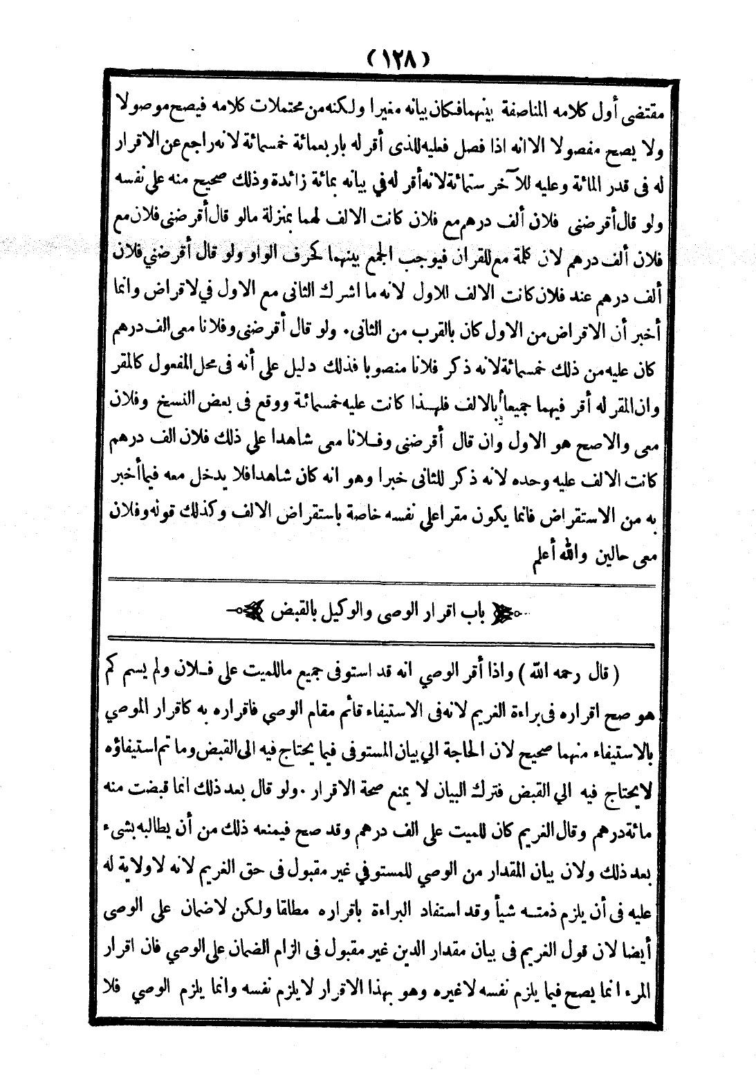 [بَابُ إقْرَارِ الْوَصِيِّ وَالْوَكِيلِ بِالْقَبْضِ]