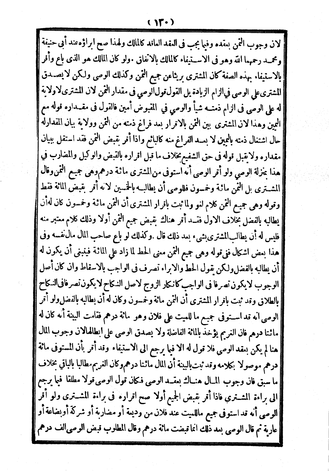 وَلَوْ أَقَرَّ الْوَصِيُّ أَنَّهُ اسْتَوْفَى مِنْ الْمُشْتَرِي مِائَةَ دِرْهَمٍ وَهِيَ جَمِيعُ الثَّمَنِ، وَقَالَ الْمُشْتَرِي بَلْ الثَّمَنُ مِائَةٌ وَخَمْسُونَ فَلِلْوَصِيِّ أَنْ يُطَالِبَهُ بِالْخَمْسِينَ؛ لِأَنَّهُ أَقَرَّ بِقَبْضِ الْمِائَةِ فَقَطْ وَقَوْلُهُ وَهِيَ جَمِيعُ الثَّمَنِ كَلَامُ لَغْوٍ وَلَمَّا ثَبَتَ بِإِقْرَارِ الْمُشْتَرِي أَنَّ الثَّمَنَ مِائَةٌ وَخَمْسُونَ كَانَ لَهُ أَنْ يُطَالِبَهُ بِالْفَضْلِ بِخِلَافِ الْأَوَّلِ فَقَدْ أَقَرَّ هُنَاكَ بِقَبْضِ جَمِيعِ الثَّمَنِ أَوَّلًا، وَذَلِكَ كَلَامٌ مُعْتَبَرٌ مِنْهُ فَلَيْسَ لَهُ أَنْ يُطَالِبَ الْمُشْتَرِيَ بِشَيْءٍ بَعْدَ ذَلِكَ قَالَ.