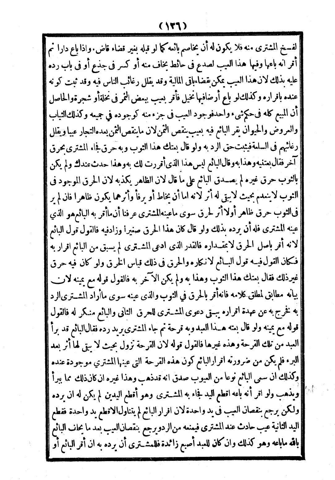 وَإِذَا بَاعَ دَارًا، ثُمَّ أَقَرَّ أَنَّهُ بَاعَهَا، وَفِيهَا هَذَا الْعَيْبُ لِصَدْعٍ فِي حَائِطٍ يَخَافُ مِنْهُ أَوْ كَسْرٍ فِي جِذْعٍ أَوْ فِي بَابٍ رَدَّهُ عَلَيْهِ بِذَلِكَ؛ لِأَنَّ هَذَا الْعَيْبَ يُمْكِنُ بِقَضَاءِ بَاقِي الْمَالِيَّةِ، وَقَدْ يُقَلِّلُ رَغَائِبَ النَّاسِ فِيهِ، وَقَدْ ثَبَتَ كَوْنُهُ عِنْدَهُ بِإِقْرَارِهِ. وَكَذَلِكَ لَوْ بَاعَ أَرْضًا فِيهَا نَخِيلٌ فَأَقَرَّ بِعَيْبٍ بِبَعْضِ الثَّمَرِ فِي نَخْلَةٍ أَوْ شَجَرَةٍ وَالْحَاصِلُ أَنَّ الْمَبِيعَ كُلَّهُ فِي حُكْمِ شَيْءٍ وَاحِدٍ فَوُجُودُ الْعَيْبِ فِي جُزْءٍ مِنْهُ كَوُجُودِهِ فِي جَمِيعِهِ. وَكَذَلِكَ الثِّيَابُ وَالْعُرُوضُ وَالْحَيَوَانُ يُقِرُّ الْبَائِعُ فِيهِ بِعَيْبٍ يُنْقِصُ الثَّمَنَ؛ لِأَنَّ مَا يُنْقِصُ الثَّمَنَ يَعُدُّهُ التُّجَّارُ عَيْبًا وَيُقَلِّلُ رَغَائِبَهُمْ فِي السِّلْعَةِ فَيَثْبُتُ حَقُّ الرَّدِّ بِهِ.