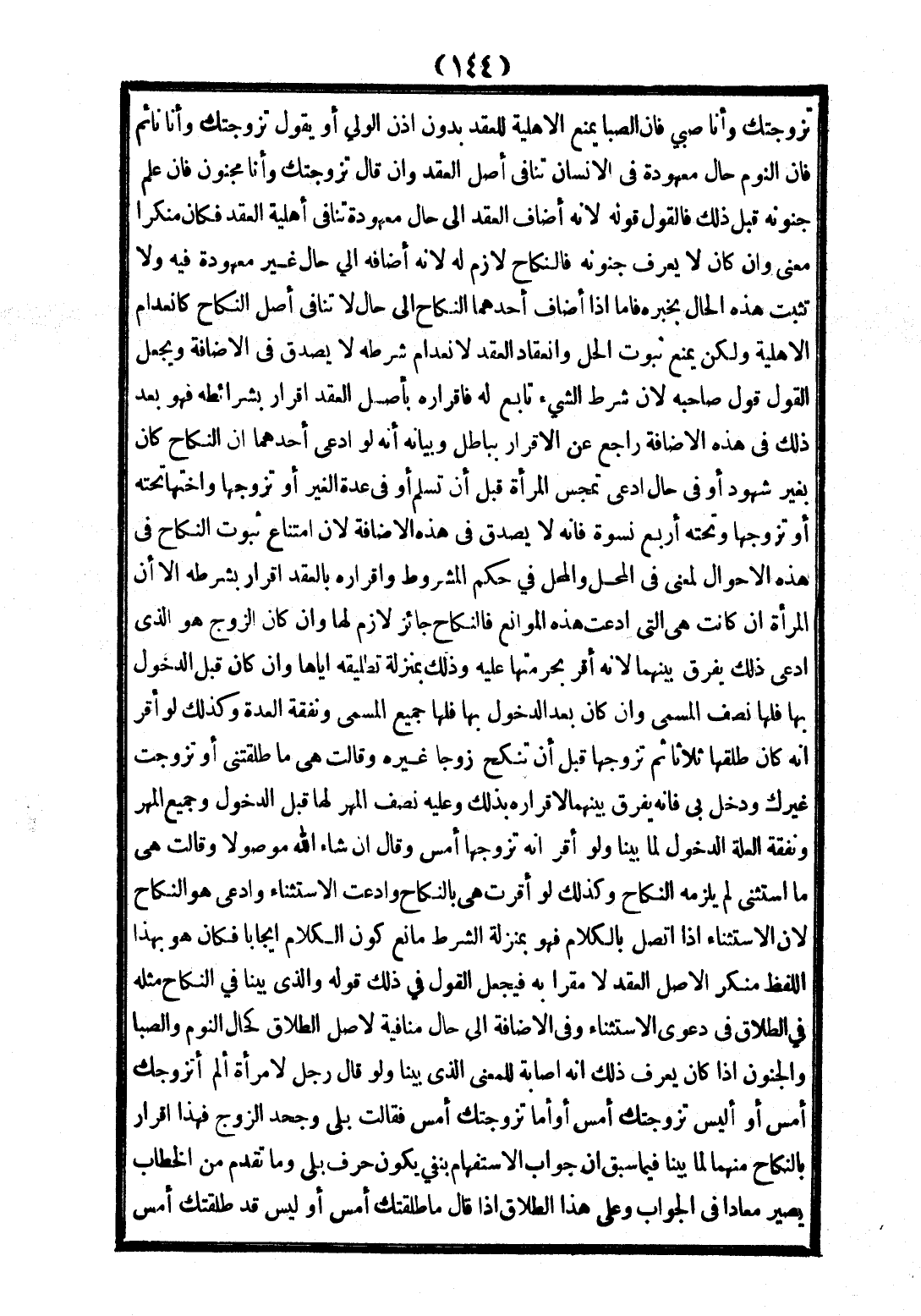 تَزَوَّجْتُكِ وَأَنَا صَبِيٌّ فَإِنَّ الصِّبَا يَمْنَعُ الْأَهْلِيَّةَ لِلْعَقْدِ بِدُونِ إذْنِ الْوَلِيِّ أَوْ يَقُولُ تَزَوَّجْتُكِ وَأَنَا نَائِمٌ فَإِنَّ النَّوْمَ حَالٌ مَعْهُودَةٌ فِي الْإِنْسَانِ تُنَافِي أَصْلَ الْعَقْدِ، وَإِنْ قَالَ: تَزَوَّجْتُكِ وَأَنَا مَجْنُونٌ، فَإِنْ عُلِمَ جُنُونُهُ قَبْلَ ذَلِكَ فَالْقَوْلُ قَوْلُهُ؛ لِأَنَّهُ أَضَافَ الْعَقْدَ إلَى حَالٍ مَعْهُودَةٍ تُنَافِي أَهْلِيَّةَ الْعَقْدِ فَكَانَ مُنْكِرًا مَعْنَى