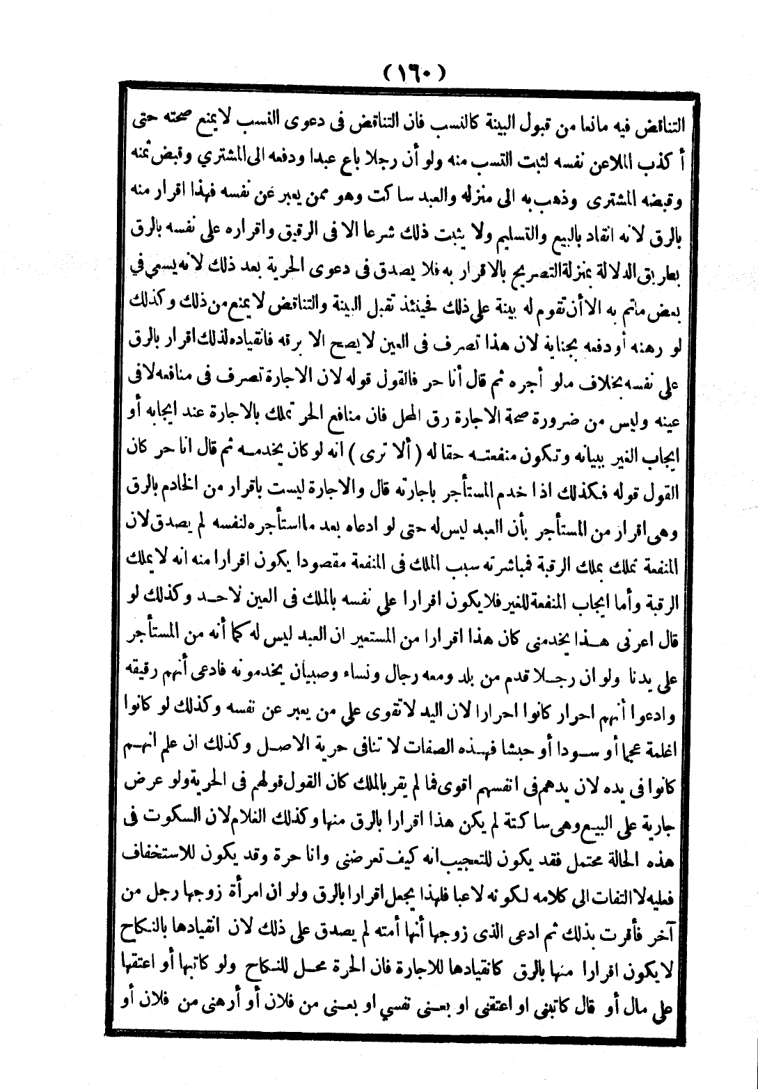 وَلَوْ أَنَّ رَجُلًا قَدِمَ مِنْ بَلَدٍ وَمَعَهُ رِجَالٌ وَنِسَاءٌ وَصِبْيَانٌ يَخْدُمُونَهُ فَادَّعَى أَنَّهُمْ رَقِيقُهُ وَادَّعَوْا أَنَّهُمْ أَحْرَارٌ كَانُوا أَحْرَارًا؛ لِأَنَّ الْيَدَ لَا تَقْوَى عَلَى مَنْ يُعَبِّرُ عَنْ نَفْسِهِ. وَكَذَلِكَ لَوْ كَانُوا أَغِلْمَةً عُجْمًا أَوْ سُودًا أَوْ حَبَشًا فَهَذِهِ الصِّفَاتُ لَا تُنَافِي حُرِّيَّةَ الْأَصْلِ. وَكَذَلِكَ إنْ عُلِمَ أَنَّهُمْ كَانُوا فِي يَدِهِ؛ لِأَنَّ يَدَهُمْ فِي أَنْفُسِهِمْ أَقْوَى فَمَا لَمْ يُقِرَّ بِالْمِلْكِ كَانَ الْقَوْلُ قَوْلَهُمْ فِي الْحُرِّيَّةِ.