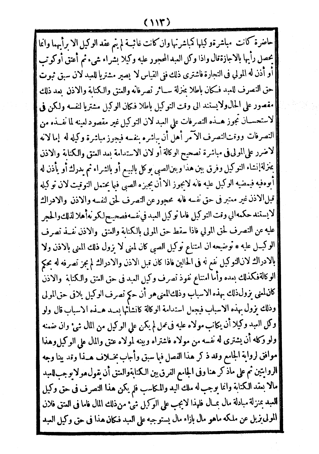 قَالَ وَإِذَا وَكَّلَ الْعَبْدُ الْمَحْجُورُ عَلَيْهِ وَكِيلًا بِشِرَاءِ شَيْءٍ ثُمَّ أُعْتِقَ أَوْ كُوتِبَ أَوْ أَذِنَ لَهُ الْمَوْلَى فِي التِّجَارَةِ فَاشْتَرَى ذَلِكَ فَفِي الْقِيَاسِ لَا يَصِيرُ مُشْتَرِيًا لِلْعَبْدِ لِأَنَّ سَبْقَ ثُبُوتِ حَقِّ التَّصَرُّفِ لِلْعَبْدِ فَكَانَ بَاطِلًا بِمَنْزِلَةِ سَائِرِ تَصَرُّفَاتِهِ وَالْعِتْقُ وَالْكِتَابَةُ وَالْإِذْنُ بَعْدَ ذَلِكَ مَقْصُورٌ عَلَى الْحَالِ وَلَا يَسْتَنِدُ إلَى وَقْتِ التَّوْكِيلِ بَاطِلًا فَكَانَ الْوَكِيلُ مُشْتَرِيًا لِنَفْسِهِ وَلَكِنْ فِي الِاسْتِحْسَانِ تَجُوزُ هَذِهِ التَّصَرُّفَاتُ عَلَى الْعَبْدِ لِأَنَّ التَّوْكِيلَ غَيْرُ مَقْصُودٍ لِعَيْنِهِ لِمَا نَفَّذَهُ مِنْ التَّصَرُّفَاتِ وَوَقْتَ التَّصَرُّفِ الْآمِرُ أَهْلٌ أَنْ يُبَاشِرَهُ بِنَفْسِهِ فَيَجُوزُ مُبَاشَرَةُ وَكِيلِهِ لَهُ إمَّا لِأَنَّهُ لَا ضَرَرَ عَلَى الْمَوْلَى فِي مُبَاشَرَةِ تَصْحِيحِ الْوَكَالَةِ أَوْ لِأَنَّ الِاسْتِدَامَةَ بَعْدَ الْعِتْقِ وَالْكِتَابَةِ وَالْإِذْنِ بِمَنْزِلَةِ إنْشَاءِ التَّوْكِيلِ؛ وَفَرْقٌ بَيْنَ الصَّبِيِّ يُوَكِّلُ بِالْبَيْعِ أَوْ بِالشِّرَاءِ ثُمَّ يُدْرِكُ أَوْ يَأْذَنُ لَهُ أَبُوهُ فِيهِ فَيُمْضِيه الْوَكِيلُ عَلَيْهِ فَإِنَّهُ لَا يَجُوزُ إلَّا أَنْ يُجِيزَهُ الصَّبِيُّ فِيمَا يَحْتَمِلُ التَّوْقِيتَ لِأَنَّ تَوْكِيلَهُ قَبْلَ الْإِذْنِ غَيْرُ مُعْتَبَرٍ فِي حَقِّ نَفْسِهِ فَإِنَّهُ مَحْجُورٌ عَنْ التَّصَرُّفِ لِحَقٍّ لِنَفْسِهِ وَالْإِذْنُ وَالْإِدْرَاكُ لَا يَسْتَنِدُ حُكْمُهُ إلَى وَقْتِ التَّوْكِيلِ فَأَمَّا تَوْكِيلُ الْعَبْدِ فِي نَفْسِهِ فَصَحِيحٌ لِكَوْنِهِ أَهْلًا لِذَلِكَ وَالْحَجْرُ عَلَيْهِ عَنْ التَّصَرُّفِ لِحَقِّ الْمَوْلَى فَإِذَا سَقَطَ حَقُّ الْمَوْلَى بِالْكِتَابَةِ وَالْعِتْقِ وَالْإِذْنِ نَفَذَ تَصَرُّفُ الْوَكِيلِ عَلَيْهِ؛ تَوْضِيحُهُ: أَنَّ امْتِنَاعَ تَوْكِيلِ الصَّبِيِّ كَانَ لِمَعْنًى لَا يَزُولُ ذَلِكَ الْمَعْنَى بِالْإِذْنِ وَلَا بِالْإِدْرَاكِ لِأَنَّ التَّوْكِيلَ نَفْعٌ لَهُ فِي الْحَالَيْنِ فَإِذَا كَانَ قَبْلَ الْإِذْنِ وَالْإِدْرَاكِ لَمْ يَجُزْ تَصَرُّفُهُ لَهُ بِحُكْمِ الْوَكَالَةِ فَكَذَلِكَ بَعْدَهُ وَأَمَّا امْتِنَاعُ نُفُوذِ تَصَرُّفِ وَكِيلِ الْعَبْدِ فِي حَقِّ الْعِتْقِ وَالْكِتَابَةِ وَالْإِذْنِ كَانَ لِمَعْنًى يَزُولُ ذَلِكَ بِهَذِهِ الْأَسْبَابِ وَذَلِكَ الْمَعْنَى هُوَ أَنَّ حُكْمَ تَصَرُّفِ الْوَكِيلِ يُلَاقِي حَقَّ الْمَوْلَى وَذَلِكَ يَزُولُ بِهَذِهِ الْأَسْبَابِ فَيَجْعَلُ اسْتِدَامَةَ الْوَكَالَةِ كَإِنْشَائِهَا بَعْدَ هَذِهِ الْأَسْبَابِ