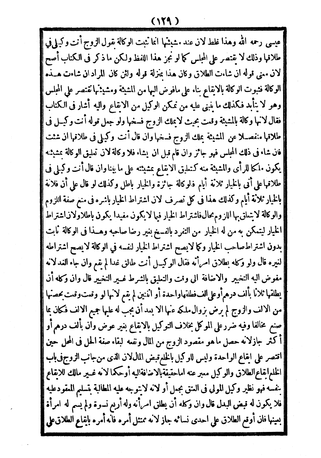 عِيسَى - رَحِمَهُ اللَّهُ - وَهَذَا غَلَطٌ؛ لِأَنَّ عِنْدَ مَشِيئَتِهَا إنَّمَا تَثْبُتُ الْوَكَالَةُ بِقَوْلِ الزَّوْجِ: أَنْتَ وَكِيلِي فِي طَلَاقِهَا، وَذَلِكَ لَا يَقْتَصِرُ عَلَى الْمَجْلِسِ.