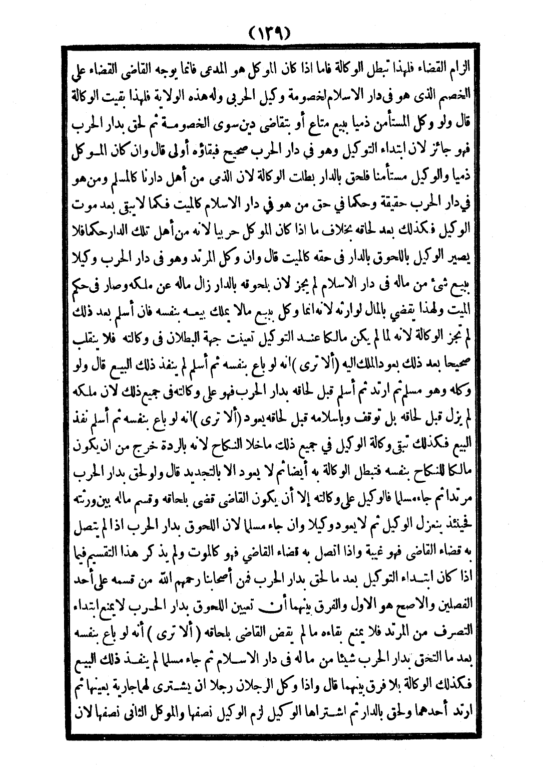 قَالَ وَإِنْ وَكَّلَ الْمُرْتَدُّ وَهُوَ فِي دَارِ الْحَرْبِ وَكِيلًا بِبَيْعِ شَيْءٍ مِنْ مَالِهِ فِي دَارِ الْإِسْلَامِ لَمْ يَجُزْ لِأَنَّ بِلُحُوقِهِ بِالدَّارِ زَالَ مَالُهُ عَنْ مِلْكِهِ وَصَارَ فِي حُكْمِ الْمَيِّتِ وَلِهَذَا يَقْضِي بِالْمَالِ لِوَارِثِهِ لِأَنَّهُ إنَّمَا وُكِّلَ بِبَيْعِ مَا لَا يَمْلِكُ بَيْعَهُ بِنَفْسِهِ فَإِنْ أَسْلَمَ بَعْدَ ذَلِكَ لَمْ تَجُزْ الْوَكَالَةُ لِأَنَّهُ لَمَّا لَمْ يَكُنْ مَالِكًا عِنْدَ التَّوْكِيلِ تَعَيَّنَتْ جِهَةُ الْبُطْلَانِ فِي وَكَالَتِهِ فَلَا يَنْقَلِبُ صَحِيحًا بَعْدَ ذَلِكَ بِعَوْدِ الْمِلْكِ إلَيْهِ أَلَا تَرَى أَنَّهُ لَوْ بَاعَ بِنَفْسِهِ ثُمَّ أَسْلَمَ لَمْ يَنْفُذْ ذَلِكَ الْبَيْعُ، قَالَ وَلَوْ وَكَّلَهُ وَهُوَ مُسْلِمٌ ثُمَّ ارْتَدَّ ثُمَّ أَسْلَمَ قَبْلَ لِحَاقِهِ بِدَارِ الْحَرْبِ فَهُوَ عَلَى وَكَالَتِهِ فِي جَمِيعِ ذَلِكَ لِأَنَّ مِلْكَهُ لَمْ يَزَلْ قَبْلَ لِحَاقِهِ بَلْ تَوَقَّفَ وَبِإِسْلَامِهِ قَبْلَ لِحَاقِهِ يَعُودُ أَلَا تَرَى أَنَّهُ لَوْ بَاعَ بِنَفْسِهِ ثُمَّ أَسْلَمَ نَفَذَ الْبَيْعُ فَكَذَلِكَ تَبْقَى وَكَالَةُ الْوَكِيلِ فِي جَمِيعِ ذَلِكَ مَا خَلَا النِّكَاحُ لِأَنَّهُ بِالرِّدَّةِ خَرَجَ مِنْ أَنْ يَكُونَ مَالِكًا لِلنِّكَاحِ بِنَفْسِهِ فَتَبْطُلُ الْوَكَالَةُ بِهِ أَيْضًا ثُمَّ لَا يَعُودُ إلَّا بِالتَّجْدِيدِ، قَالَ وَلَوْ لَحِقَ بِدَارِ الْحَرْبِ مُرْتَدًّا ثُمَّ جَاءَ مُسْلِمًا فَالْوَكِيلُ عَلَى وَكَالَتِهِ إلَّا أَنْ يَكُونَ الْقَاضِي قَضَى بِلِحَاقِهِ وَقَسَّمَ مَالَهُ بَيْنَ وَرَثَتِهِ فَحِينَئِذٍ يَنْعَزِلُ الْوَكِيلُ ثُمَّ لَا يَعُودُ وَكِيلًا وَإِنْ جَاءَ مُسْلِمًا لِأَنَّ اللُّحُوقَ بِدَارِ الْحَرْبِ إذَا لَمْ يَتَّصِلْ بِهِ قَضَاءُ الْقَاضِي فَهُوَ غَيْبَةٌ وَإِذَا اتَّصَلَ بِهِ قَضَاءُ الْقَاضِي فَهُوَ كَالْمَوْتِ وَلَمْ يَذْكُرْ هَذَا التَّقْسِيمَ فِيمَا إذَا كَانَ ابْتِدَاءُ التَّوْكِيلِ بَعْدَ مَا لَحِقَ بِدَارِ الْحَرْبِ فَمِنْ أَصْحَابِنَا - رَحِمَهُمُ اللَّهُ - مَنْ قَسَّمَهُ عَلَى أَحَدِ الْفَصْلَيْنِ وَالْأَصَحُّ هُوَ الْأَوَّلُ، وَالْفَرْقُ بَيْنَهُمَا أَنَّ تَعْيِينَ اللُّحُوقِ بِدَارِ الْحَرْبِ لَا يَمْنَعُ ابْتِدَاءَ التَّصَرُّفِ مِنْ الْمُرْتَدِّ فَلَا يَمْنَعُ بَقَاءَهُ مَا لَمْ يَقْضِ الْقَاضِي بِلِحَاقِهِ أَلَا تَرَى أَنَّهُ لَوْ بَاعَ بِنَفْسِهِ بَعْدَ مَا الْتَحَقَ بِدَارِ الْحَرْبِ شَيْئًا مِنْ مَالِهِ فِي دَارِ الْإِسْلَامِ ثُمَّ جَاءَ مُسْلِمًا لَمْ يَنْفُذْ ذَلِكَ الْبَيْعُ فَكَذَلِكَ الْوَكَالَةُ بِلَا فَرْقٍ بَيْنَهُمَا