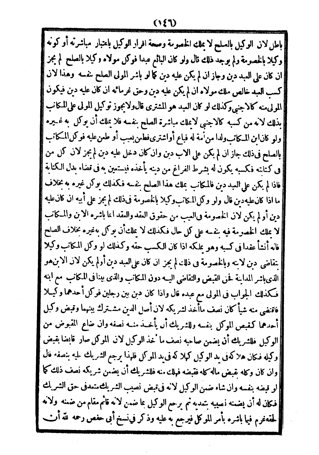 قَالَ وَلَوْ كَانَ الْبَائِعُ عَبْدًا فَوَكَّلَ مَوْلَاهُ وَكِيلًا بِالصُّلْحِ لَمْ يَجُزْ إنْ كَانَ عَلَى الْعَبْدِ دَيْنٌ وَجَازَ إنْ لَمْ يَكُنْ عَلَيْهِ دَيْنٌ كَمَا لَوْ بَاشَرَ الْمَوْلَى الصُّلْحَ بِنَفْسِهِ، وَهَذَا لِأَنَّ كَسْبَ الْعَبْدِ خَالِصُ مِلْكِ مَوْلَاهُ إنْ لَمْ يَكُنْ عَلَيْهِ دَيْنٌ وَحَقُّ غُرَمَائِهِ إنْ كَانَ عَلَيْهِ دَيْنٌ فَيَكُونُ الْمَوْلَى مِنْهُ كَالْأَجْنَبِيِّ وَكَذَلِكَ لَوْ كَانَ الْعَبْدُ هُوَ الْمُشْتَرِي قَالَ وَلَا يَجُوزُ تَوْكِيلُ الْمَوْلَى عَلَى الْمُكَاتَبِ بِذَلِكَ لِأَنَّهُ مِنْ كَسْبِهِ كَالْأَجْنَبِيِّ لَا يَمْلِكُ مُبَاشَرَةَ الصُّلْحِ بِنَفْسِهِ فَلَا يَمْلِكُ أَنْ يُوَكِّلَ بِهِ غَيْرَهُ، وَلَوْ كَانَ ابْنُ الْمُكَاتَبِ وَلَدًا مِنْ أَمَةٍ لَهُ فَبَاعَ أَوْ اشْتَرَى فَطَعَنَ بِعَيْبٍ أَوْ طَعَنَ عَلَيْهِ فَوَكَّلَ الْمُكَاتَبَ بِالصُّلْحِ فِي ذَلِكَ جَازَ إنْ لَمْ يَكُنْ عَلَى الْأَبِ دَيْنٌ وَإِنْ كَانَ دَخَلَ عَلَيْهِ دَيْنٌ لَمْ يَجُزْ لِأَنَّ كُلَّ مَنْ فِي كِتَابَتِهِ فَكَسْبُهُ يَكُونُ لَهُ بِشَرْطِ الْفَرَاغِ مِنْ دَيْنِهِ يَأْخُذُهُ فَيَسْتَعِينُ بِهِ فِي قَضَاءِ بَدَلِ الْكِتَابَةِ، فَإِذَا لَمْ يَكُنْ عَلَى الْعَبْدِ دَيْنٌ فَالْمُكَاتَبُ يَمْلِكُ هَذَا الصُّلْحَ بِنَفْسِهِ فَكَذَلِكَ يُوَكِّلُ غَيْرَهُ بِهِ بِخِلَافِ مَا إذَا كَانَ عَلَيْهِ دَيْنٌ قَالَ وَلَوْ وَكَّلَ الْمُكَاتَبُ وَكِيلًا بِالْخُصُومَةِ فِي ذَلِكَ لَمْ يَجُزْ عَلَى أَبِيهِ إنْ كَانَ عَلَيْهِ دَيْنٌ أَوْ لَمْ يَكُنْ لِأَنَّ الْخُصُومَةَ فِي الْعَيْبِ مِنْ حُقُوقِ الْعَقْدِ وَالْعَقْدُ إنَّمَا بَاشَرَهُ الِابْنُ وَالْمُكَاتَبُ لَا يَمْلِكُ الْخُصُومَةَ فِيهِ بِنَفْسِهِ عَلَى كُلِّ حَالٍ فَكَذَلِكَ لَا يَمْلِكُ أَنْ يُوَكِّلَ بِهِ غَيْرَهُ بِخِلَافِ الصُّلْحِ فَإِنَّهُ أَنْشَأَ عَقْدًا فِي كَسْبِهِ وَهُوَ يَمْلِكُهُ إذَا كَانَ الْكَسْبُ حَقَّهُ، وَكَذَلِكَ لَوْ وَكَّلَ الْمُكَاتَبُ وَكِيلًا بِتَقَاضِي دَيْنٍ لِابْنِهِ وَبِالْخُصُومَةِ فِي ذَلِكَ لَمْ يَجُزْ إنْ كَانَ عَلَى الْعَبْدِ دَيْنٌ أَوْ لَمْ يَكُنْ، لِأَنَّ الِابْنَ هُوَ الَّذِي بَاشَرَ الْمُدَايِنَةَ فَحَقُّ الْقَبْضِ وَالتَّقَاضِي إلَيْهِ دُونَ الْمُكَاتَبِ وَاَلَّذِي بَيَّنَّا فِي الْمُكَاتَبِ مَعَ ابْنِهِ فَكَذَلِكَ الْجَوَابُ فِي الْمَوْلَى مَعَ عَبْدِهِ