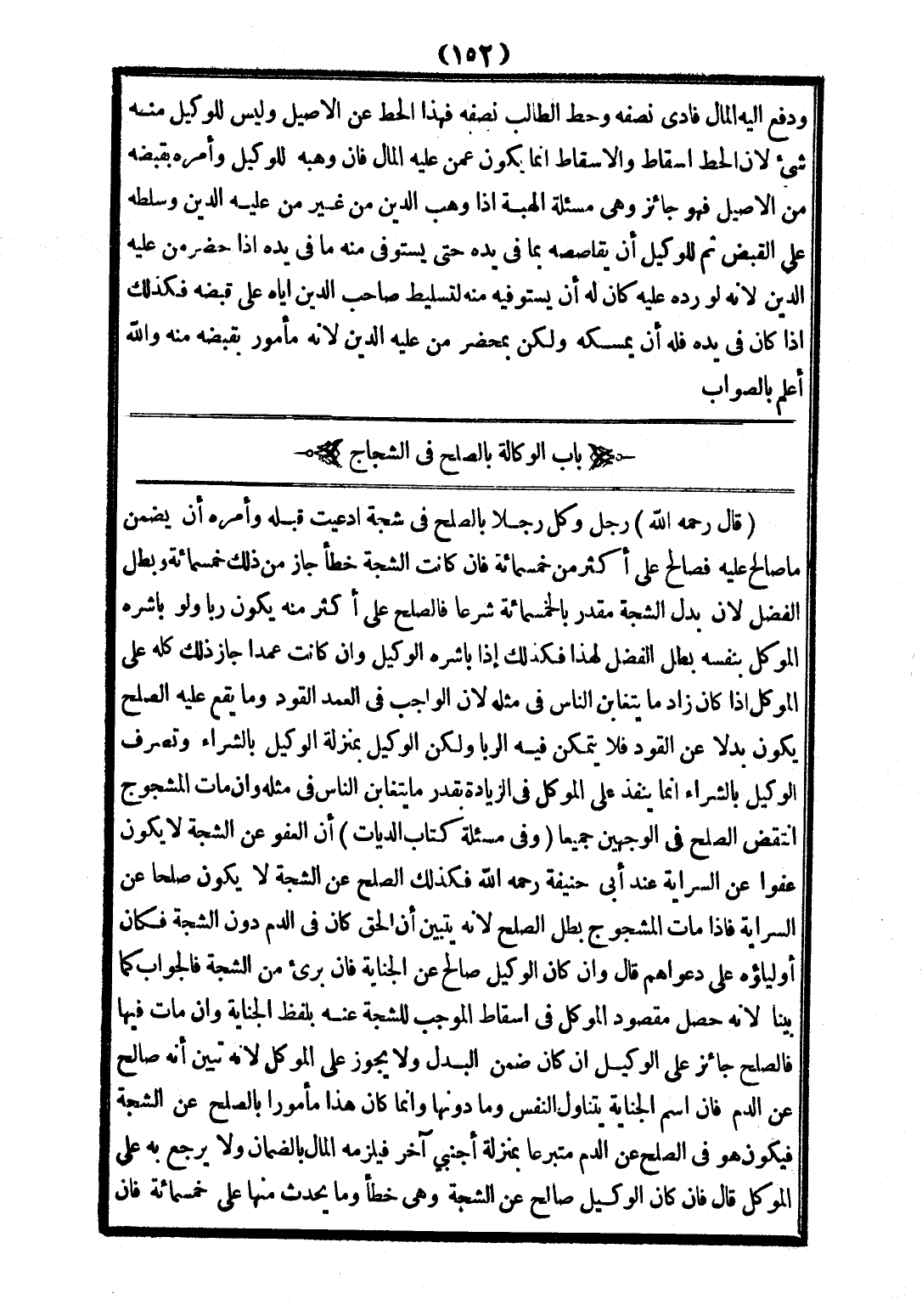 قَالَ - رَحِمَهُ اللَّهُ - رَجُلٌ وَكَّلَ رَجُلًا بِالصُّلْحِ فِي شَجَّةٍ اُدُّعِيَتْ قِبَلَهُ وَأَمَرَهُ أَنْ يَضْمَنَ مَا صَالَحَ عَلَيْهِ فَصَالَحَ عَلَى أَكْثَرَ مِنْ خَمْسِمِائَةٍ فَإِنْ كَانَتْ الشَّجَّةُ خَطَأً جَازَ مِنْ ذَلِكَ خَمْسُمِائَةٍ وَبَطَلَ الْفَضْلُ لِأَنَّ بَدَلَ الشَّجَّةِ مُقَدَّرٌ بِالْخَمْسِمِائَةِ شَرْعًا فَالصُّلْحُ عَلَى أَكْثَرَ مِنْهُ يَكُونُ رِبًا، وَلَوْ بَاشَرَهُ الْمُوَكِّلُ بِنَفْسِهِ بَطَلَ الْفَضْلُ لِهَذَا فَكَذَلِكَ إذَا بَاشَرَهُ الْوَكِيلُ، وَإِنْ كَانَتْ عَمْدًا جَازَ ذَلِكَ كُلُّهُ عَلَى الْمُوَكِّلِ إذَا كَانَ زَادَ مَا يَتَغَابَنُ النَّاسُ فِي مِثْلِهِ لِأَنَّ الْوَاجِبَ فِي الْعَمْدِ الْقَوَدُ وَمَا يَقَعُ عَلَيْهِ الصُّلْحُ يَكُونُ بَدَلًا عَنْ الْقَوَدِ فَلَا يَتَمَكَّنُ فِيهِ الرِّبَا وَلَكِنَّ الْوَكِيلَ بِمَنْزِلَةِ الْوَكِيلِ بِالشِّرَاءِ وَتَصَرُّفُ الْوَكِيلِ بِالشِّرَاءِ إنَّمَا يَنْفُذُ عَلَى الْمُوَكِّلِ فِي الزِّيَادَةِ بِقَدْرِ مَا يَتَغَابَنُ النَّاسُ فِي مِثْلِهِ، وَإِنْ مَاتَ الْمَشْجُوجُ اُنْتُقِضَ الصُّلْحُ فِي الْوَجْهَيْنِ جَمِيعًا، وَفِي مَسْأَلَةِ كِتَابِ الدِّيَاتِ أَنَّ الْعَفْوَ عَنْ الشَّجَّةِ لَا يَكُونُ عَفْوًا عَنْ السِّرَايَةِ عِنْدَ أَبِي حَنِيفَةَ - رَحِمَهُ اللَّهُ - فَكَذَلِكَ الصُّلْحُ عَنْ الشَّجَّةِ لَا يَكُونُ صُلْحًا عَنْ السِّرَايَةِ فَإِذَا مَاتَ الْمَشْجُوجُ بَطَلَ الصُّلْحُ لِأَنَّهُ يَتَبَيَّنُ أَنَّ الْحَقَّ كَانَ فِي الدَّمِ دُونَ الشَّجَّةِ فَكَانَ أَوْلِيَاؤُهُ عَلَى دَعْوَاهُمْ.