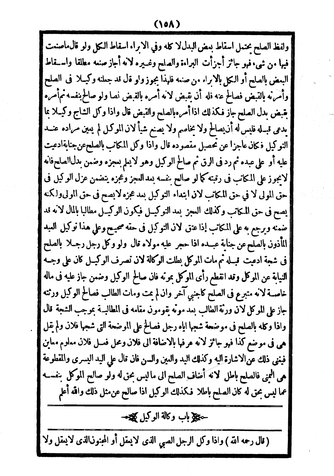 قَالَ - رَحِمَهُ اللَّهُ - وَإِذَا وَكَّلَ الرَّجُلُ الصَّبِيَّ الَّذِي لَا يَعْقِلُ أَوْ الْمَجْنُونَ الَّذِي لَا يَعْقِلُ وَلَا