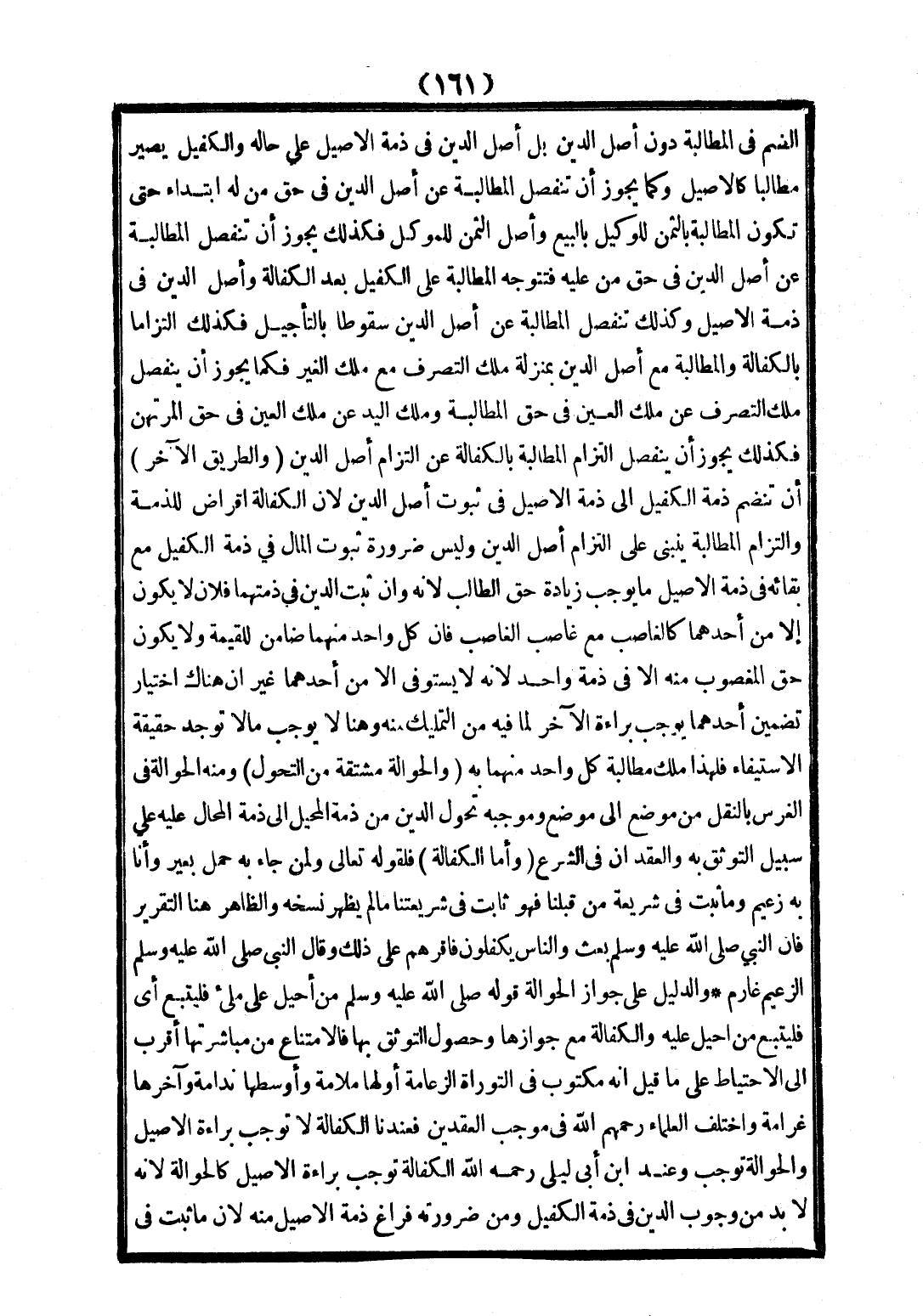 الضَّمُّ فِي الْمُطَالَبَةِ دُونَ أَصْلِ الدَّيْنِ بَلْ أَصْلُ الدَّيْنِ فِي ذِمَّةِ الْأَصِيلِ عَلَى حَالِهِ. وَالْكَفِيلُ يَصِيرُ مُطَالَبًا كَالْأَصِيلِ وَكَمَا يَجُوزُ أَنْ تَنْفَصِلَ الْمُطَالَبَةُ عَنْ أَصْلِ الدَّيْنِ فِي حَقِّ مَنْ لَهُ ابْتِدَاءً حَتَّى تَكُونَ الْمُطَالَبَةُ بِالثَّمَنِ لِلْوَكِيلِ بِالْبَيْعِ وَأَصْلُ الثَّمَنِ لِلْمُوَكِّلِ فَكَذَلِكَ يَجُوزُ أَنْ تَنْفَصِلَ الْمُطَالَبَةُ عَنْ أَصْلِ الدَّيْنِ فِي حَقِّ مَنْ عَلَيْهِ فَتَتَوَجَّهُ الْمُطَالَبَةُ عَلَى الْكَفِيلِ بَعْدَ الْكَفَالَةِ وَأَصْلُ الدَّيْنِ فِي ذِمَّةِ الْأَصِيلِ وَكَذَلِكَ تَنْفَصِلُ الْمُطَالَبَةُ عَنْ أَصْلِ الدَّيْنِ سُقُوطًا بِالتَّأْجِيلِ فَكَذَلِكَ الْتِزَامًا بِالْكَفَالَةِ، وَالْمُطَالَبَةُ مَعَ أَصْلِ الدَّيْنِ بِمَنْزِلَةِ مِلْكِ التَّصَرُّفِ مَعَ مِلْكِ الْغَيْرِ فَكَمَا يَجُوزُ أَنْ يَنْفَصِلَ مِلْكُ التَّصَرُّفِ عَنْ مِلْكِ الْعَيْنِ فِي حَقِّ الْمُطَالَبَةِ وَمِلْكُ الْيَدِ عَنْ مِلْكِ الْعَيْنِ فِي حَقِّ الْمُرْتَهِنِ فَكَذَلِكَ يَجُوزُ أَنْ يَنْفَصِلَ الْتِزَامُ الْمُطَالَبَةِ بِالْكَفَالَةِ عَنْ الْتِزَامِ أَصْلِ الدَّيْنِ (وَالطَّرِيقُ الْآخَرُ) أَنْ تَنْضَمَّ ذِمَّةُ الْكَفِيلِ إلَى ذِمَّةِ الْأَصِيلِ فِي ثُبُوتِ أَصْلِ الدَّيْنِ لِأَنَّ الْكَفَالَةَ إقْرَاضٌ لِلذِّمَّةِ.
