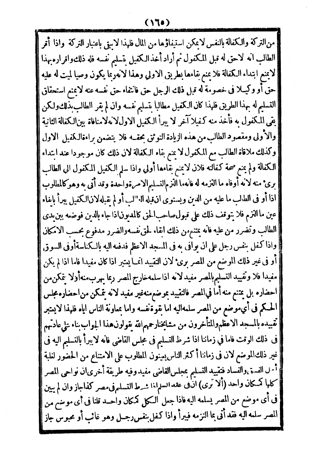 وَإِذَا كَفَلَ بِنَفْسِ رَجُلٍ عَلَى أَنْ يُوَافِيَ بِهِ فِي الْمَسْجِدِ الْأَعْظَمِ فَدَفَعَهُ إلَيْهِ بِالْكُنَاسَةِ أَوْ فِي السُّوقِ أَوْ فِي غَيْرِ ذَلِكَ الْمَوْضِعِ مِنْ الْمِصْرِ بَرِئَ لِأَنَّ التَّقْيِيدَ إنَّمَا يُعْتَبَرُ إذَا كَانَ مُفِيدًا فَأَمَّا إذَا لَمْ يَكُنْ مُفِيدًا فَلَا وَتَقْيِيدُ التَّسْلِيمِ بِالْمِصْرِ مُفِيدٌ لِأَنَّهُ إذَا سَلَّمَهُ خَارِجَ الْمِصْرِ رُبَّمَا يَهْرُبُ مِنْهُ أَوْ لَا يَتَمَكَّنُ مِنْ إحْضَارِهِ بَلْ يَمْتَنِعُ مِنْهُ أَمَّا فِي الْمِصْرِ فَالتَّقْيِيدُ بِمَوْضِعٍ مِنْهُ غَيْرُ مُفِيدٍ لِأَنَّهُ يَتَمَكَّنُ مِنْ إحْضَارِهِ مَجْلِسَ الْحُكْمِ فِي أَيِّ مَوْضِعٍ مِنْ الْمِصْرِ سَلَّمَهُ إلَيْهِ إمَّا بِقُوَّةِ نَفْسِهِ وَإِمَّا بِمُعَاوَنَةِ النَّاسِ إيَّاهُ فَلِهَذَا لَا يُعْتَبَرُ تَقْيِيدُهُ بِالْمَسْجِدِ الْأَعْظَمِ وَالْمُتَأَخِّرُونَ مِنْ مَشَايِخِنَا - رَحِمَهُمُ اللَّهُ - يَقُولُونَ هَذَا الْجَوَابُ بِنَاءً عَلَى عَادَتِهِمْ فِي ذَلِكَ الْوَقْتِ فَأَمَّا فِي زَمَانِنَا إذَا شَرَطَ التَّسْلِيمَ فِي مَجْلِسِ الْقَاضِي فَإِنَّهُ لَا يَبْرَأُ بِالتَّسْلِيمِ إلَيْهِ فِي غَيْرِ ذَلِكَ الْمَوْضِعِ لِأَنَّ فِي زَمَانِنَا أَكْثَرَ النَّاسِ يُعَيِّنُونَ الْمَطْلُوبَ عَلَى الِامْتِنَاعِ مِنْ الْحُضُورِ لِغَلَبَةِ أَهْلِ الْفِسْقِ وَالْفَسَادِ فَتَقْيِيدُ التَّسْلِيمِ بِمَجْلِسِ الْقَاضِي مُفِيدٌ وَفِيهِ طَرِيقَةٌ أُخْرَى أَنَّ نَوَاحِيَ الْمِصْرِ كُلَّهَا كَمَكَانٍ وَاحِدٍ. (أَلَا تَرَى) أَنَّ فِي عَقْدِ السَّلَمِ إذَا شُرِطَ التَّسْلِيمُ فِي مِصْرٍ كَذَا جَازَ وَإِنْ لَمْ يُبَيِّنْ فِي أَيِّ مَوْضِعٍ مِنْ الْمِصْرِ يُسَلِّمُهُ إلَيْهِ فَإِذَا جُعِلَ الْكُلُّ كَمَكَانٍ وَاحِدٍ قُلْنَا فِي أَيِّ مَوْضِعٍ مِنْ الْمِصْرِ سَلَّمَهُ إلَيْهِ فَقَدْ أَتَى بِمَا الْتَزَمَهُ فَيَبْرَأُ