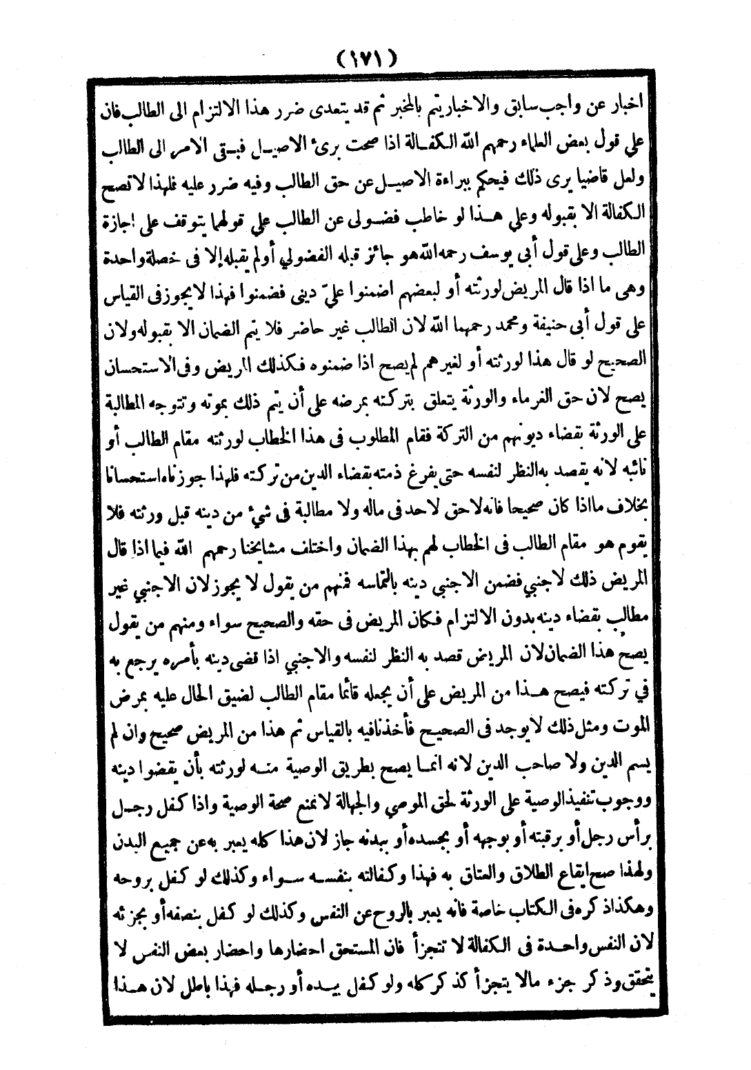 وَهِيَ مَا إذَا قَالَ الْمَرِيضُ لِوَرَثَتِهِ أَوْ لِبَعْضِهِمْ اضْمَنُوا عَلَيَّ دَيْنِي فَضَمِنُوا فَهَذَا لَا يَجُوزُ فِي الْقِيَاسِ عَلَى قَوْلِ أَبِي حَنِيفَةَ وَمُحَمَّدٍ - رَحِمَهُمَا اللَّهُ - لِأَنَّ الطَّالِبَ غَيْرُ حَاضِرٍ فَلَا يَتِمُّ الضَّمَانُ إلَّا بِقَبُولِهِ وَلِأَنَّ الصَّحِيحَ لَوْ قَالَ هَذَا لِوَرَثَتِهِ أَوْ لِغَيْرِهِمْ لَمْ يَصِحَّ إذَا ضَمِنُوهُ فَكَذَلِكَ الْمَرِيضُ وَفِي الِاسْتِحْسَانِ يَصِحُّ لِأَنَّ حَقَّ الْغُرَمَاءِ وَالْوَرَثَةِ يَتَعَلَّقُ بِتَرِكَتِهِ بِمَرَضِهِ عَلَى أَنْ يَتِمَّ ذَلِكَ بِمَوْتِهِ وَتَتَوَجَّهُ الْمُطَالَبَةُ عَلَى الْوَرَثَةِ بِقَضَاءِ دُيُونِهِمْ مِنْ التَّرِكَةِ فَقَامَ الْمَطْلُوبُ فِي هَذَا الْخِطَابِ لِوَرَثَتِهِ مَقَامَ الطَّالِبِ أَوْ نَائِبِهِ لِأَنَّهُ يُقْصَدُ بِهِ النَّظَرُ لِنَفْسِهِ حَتَّى يُفَرِّغَ ذِمَّتَهُ - بِقَضَاءِ الدَّيْنِ - مِنْ تَرِكَتِهِ فَلِهَذَا جَوَّزْنَاهُ اسْتِحْسَانًا، بِخِلَافِ مَا إذَا كَانَ صَحِيحًا فَإِنَّهُ لَا حَقَّ لِأَحَدٍ فِي مَالِهِ، وَلَا مُطَالَبَةَ فِي شَيْءٍ مِنْ دَيْنِهِ قِبَلَ وَرَثَتِهِ فَلَا يَقُومُ هُوَ مَقَامَ الطَّالِبِ فِي الْخِطَابِ لَهُمْ بِهَذَا الضَّمَانِ وَاخْتَلَفَ مَشَايِخُنَا - رَحِمَهُمُ اللَّهُ - فِيمَا إذَا قَالَ الْمَرِيضُ ذَلِكَ لِأَجْنَبِيٍّ فَضَمِنَ الْأَجْنَبِيُّ دَيْنَهُ بِالْتِمَاسِهِ فَمِنْهُمْ مَنْ يَقُولُ: لَا يَجُوزُ؛ لِأَنَّ الْأَجْنَبِيَّ غَيْرُ مُطَالَبٍ بِقَضَاءِ دَيْنِهِ بِدُونِ الِالْتِزَامِ، فَكَانَ الْمَرِيضُ فِي حَقِّهِ وَالصَّحِيحُ سَوَاءً وَمِنْهُمْ مَنْ يَقُولُ: يَصِحُّ هَذَا الضَّمَانُ؛ لِأَنَّ الْمَرِيضَ قَصَدَ بِهِ النَّظَرَ لِنَفْسِهِ.