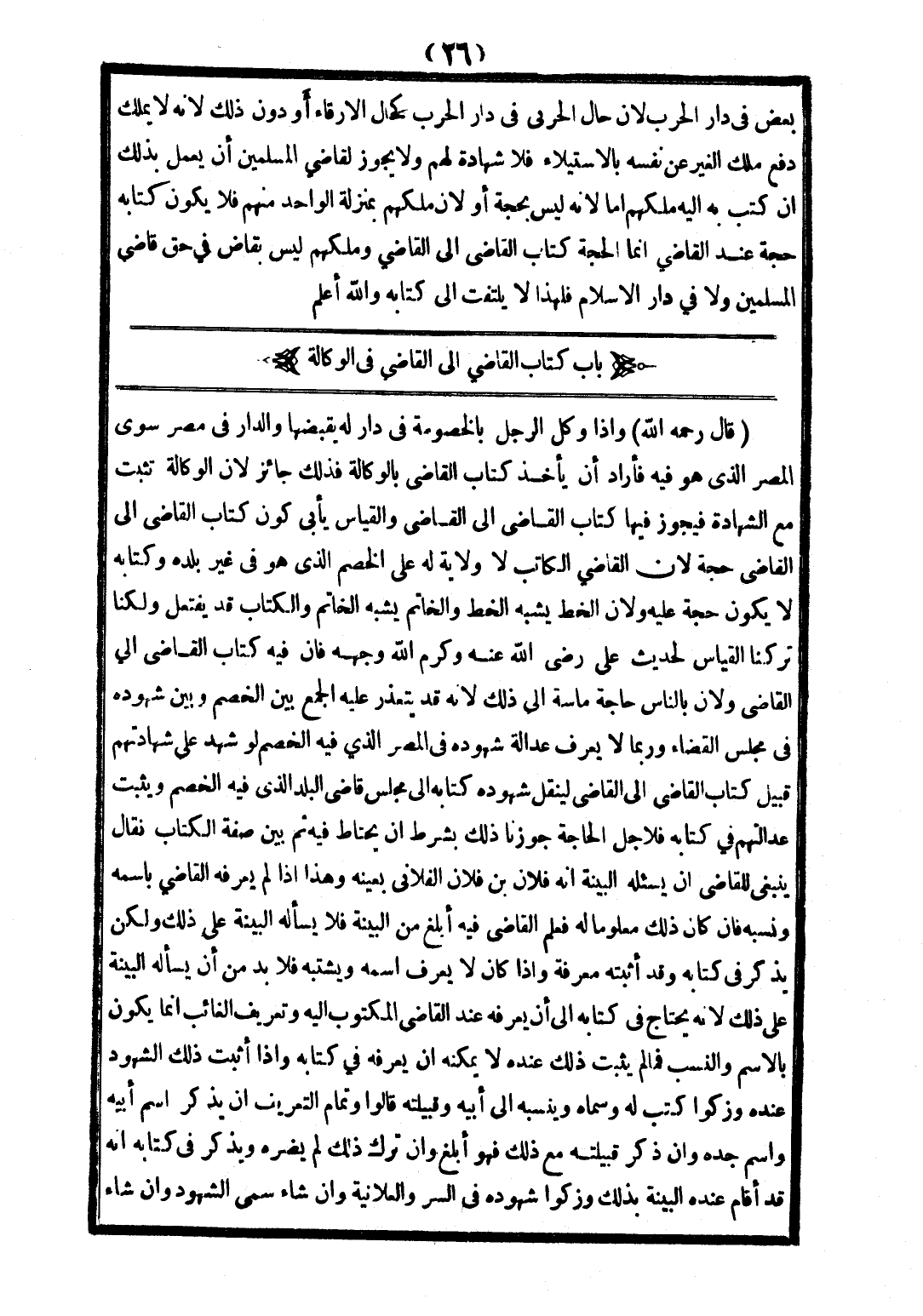 قَالَ - رَحِمَهُ اللَّهُ -: وَإِذَا وَكَّلَ الرَّجُلُ بِالْخُصُومَةِ فِي دَارٍ لَهُ بِقَبْضِهَا، وَالدَّارُ فِي مِصْرٍ سِوَى الْمِصْرِ الَّذِي هُوَ فِيهِ، فَأَرَادَ أَنْ يَأْخُذَ كِتَابَ الْقَاضِي بِالْوَكَالَةِ فَذَلِكَ جَائِزٌ؛ لِأَنَّ الْوَكَالَةَ تَثْبُتُ مَعَ الشَّهَادَةِ، فَيَجُوزُ فِيهَا كِتَابُ الْقَاضِي إلَى الْقَاضِي، وَالْقِيَاسُ يَأْبَى كَوْنَ كِتَابِ الْقَاضِي إلَى الْقَاضِي حُجَّةً؛ لِأَنَّ الْقَاضِيَ الْكَاتِبَ لَا وِلَايَةَ لَهُ عَلَى الْخَصْمِ الَّذِي هُوَ فِي غَيْرِ بَلَدِهِ وَكِتَابُهُ لَا يَكُونُ حُجَّةً عَلَيْهِ، وَلِأَنَّ الْخَطَّ يُشْبِهُ الْخَطَّ، وَالْخَاتَمَ يُشْبِهُ الْخَاتَمَ، وَالْكِتَابُ قَدْ يُفْتَعَلُ وَلَكِنَّا تَرَكْنَا الْقِيَاسَ لِحَدِيثِ عَلِيٍّ - رَضِيَ اللَّهُ عَنْهُ - وَكَرَّمَ اللَّهُ وَجْهَهُ، فَإِنَّ فِيهِ كِتَابَ الْقَاضِي إلَى الْقَاضِي، وَلِأَنَّ بِالنَّاسِ حَاجَةً مَاسَّةً إلَى ذَلِكَ؛ لِأَنَّهُ قَدْ يَتَعَذَّرُ عَلَيْهِ الْجَمْعُ بَيْنَ الْخَصْمِ وَبَيْنَ شُهُودِهِ فِي مَجْلِسِ الْقَضَاءِ، وَرُبَّمَا لَا يَعْرِفُ عَدَالَةَ شُهُودِهِ فِي الْمِصْرِ الَّذِي فِيهِ الْخَصْمُ، لَوْ شَهِدَ عَلَى شَهَادَتِهِمْ قُبَيْلَ كِتَابِ الْقَاضِي إلَى الْقَاضِي لِيَنْقُلَ شُهُودُهُ كِتَابَهُ إلَى مَجْلِسِ قَاضِي الْبَلَدِ الَّذِي فِيهِ الْخَصْمُ وَيُثْبِتَ عَدَالَتَهُمْ فِي كِتَابِهِ، فَلِأَجْلِ الْحَاجَةِ جَوَّزْنَا ذَلِكَ بِشَرْطِ أَنْ يُحْتَاطَ فِيهِ.