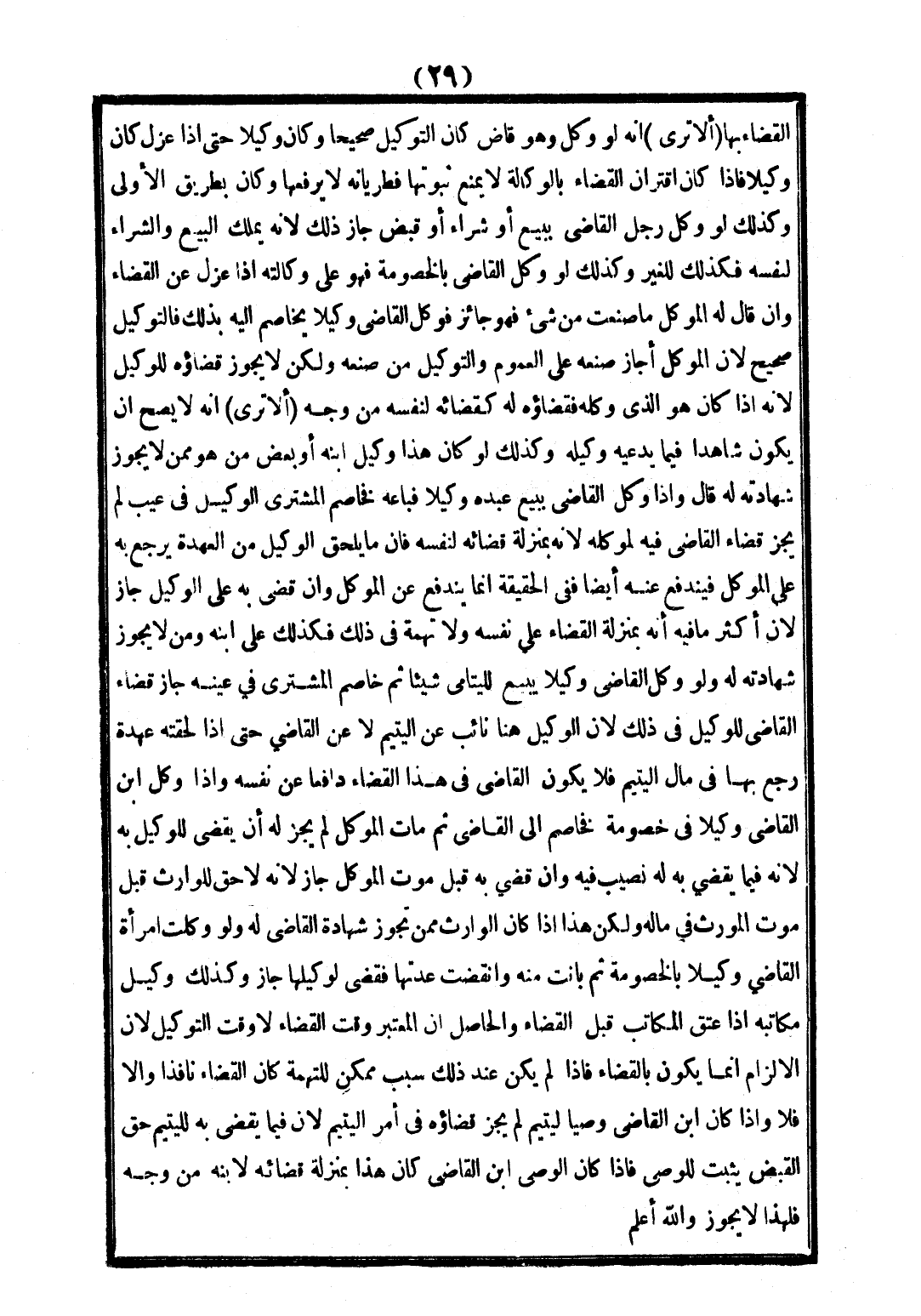 الْقَضَاءِ بِهَا، أَلَا تَرَى أَنَّهُ لَوْ وُكِّلَ وَهُوَ قَاضٍ كَانَ التَّوْكِيلُ صَحِيحًا وَكَانَ وَكِيلًا، حَتَّى إذَا عُزِلَ كَانَ وَكِيلًا فَإِذَا كَانَ اقْتِرَانُ الْقَضَاءِ بِالْوَكَالَةِ لَا يَمْنَعُ ثُبُوتَهَا، فَطَرَيَانُهُ لَا يَرْفَعُهَا وَكَانَ بِطَرِيقِ الْأَوْلَى.