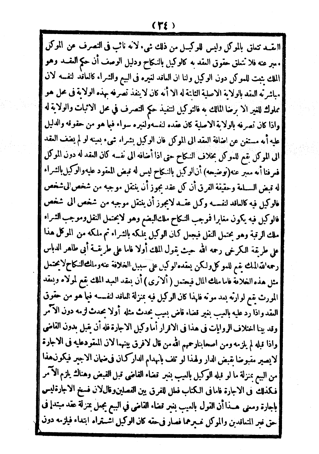 الْعَقْدِ تَتَعَلَّقُ بِالْمُوَكِّلِ، وَلَيْسَ لِلْوَكِيلِ مِنْ ذَلِكَ شَيْءٌ؛ لِأَنَّهُ نَائِبٌ فِي التَّصَرُّفِ عَنْ الْمُوَكِّلِ مُعَبِّرٌ عَنْهُ، فَلَا تَتَعَلَّقُ حُقُوقُ الْعَقْدِ بِهِ كَالْوَكِيلِ بِالنِّكَاحِ، وَدَلِيلُ الْوَصْفِ أَنَّ حُكْمَ الْعَقْدِ وَهُوَ الْمِلْكُ يَثْبُتُ لِلْمُوَكِّلِ دُونَ الْوَكِيلِ؛ وَلَنَا أَنَّ الْعَاقِدَ لِغَيْرِهِ فِي الْبَيْعِ وَالشِّرَاءِ كَالْعَاقِدِ لِنَفْسِهِ، لِأَنَّ مُبَاشَرَتَهُ الْعَقْدَ بِالْوِلَايَةِ الْأَصْلِيَّةِ الثَّابِتَةِ لَهُ، إلَّا أَنَّهُ كَانَ لَا يَنْفُذُ تَصَرُّفُهُ بِهَذِهِ الْوِلَايَةِ فِي مَحَلٍّ هُوَ مَمْلُوكٌ لِلْغَيْرِ إلَّا بِرِضَا الْمَالِكِ بِهِ، فَالتَّوْكِيلُ لِتَنْفِيذِ حُكْمِ التَّصَرُّفِ فِي مَحَلِّ الْإِثْبَاتِ وَالْوِلَايَةِ لَهُ، وَإِذَا كَانَ تَصَرُّفُهُ بِالْوِلَايَةِ الْأَصْلِيَّةِ كَانَ عَقْدُهُ لِنَفْسِهِ وَلِغَيْرِهِ سَوَاءً فِيمَا هُوَ مِنْ حُقُوقِهِ، وَالدَّلِيلُ عَلَيْهِ أَنَّهُ مُسْتَغْنٍ عَنْ إضَافَةِ الْعَقْدِ إلَى الْمُوَكِّلِ فَإِنَّ الْوَكِيلَ بِشِرَاءِ شَيْءٍ بِعَيْنِهِ لَوْ لَمْ يُضِفْ الْعَقْدَ إلَى الْمُوَكِّلِ؛ يَقَعُ لِلْمُوَكِّلِ بِخِلَافِ النِّكَاحِ حَتَّى إذَا أَضَافَهُ إلَى نَفْسِهِ كَانَ الْعَقْدُ لَهُ دُونَ الْمُوَكِّلِ، فَعَرَفْنَا أَنَّهُ مُعَبِّرٌ عَنْهُ تَوْضِيحُهُ أَنَّ الْوَكِيلَ بِالنِّكَاحِ لَيْسَ لَهُ قَبْضُ الْمَعْقُودِ عَلَيْهِ