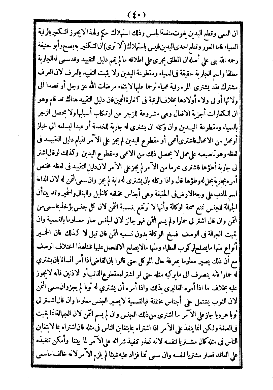وَأَبُو حَنِيفَةَ - رَحِمَهُ اللَّهُ - بَنَى عَلَى أَصْلِهِ أَنَّ الْمُطْلَقَ يَجْرِي عَلَى إطْلَاقِهِ، مَا لَمْ يَقُمْ دَلِيلُ التَّقْيِيدِ، وَقَدْ سَمَّى لَهُ الْجَارِيَةَ مُطْلَقًا، وَاسْمُ الْجَارِيَةِ حَقِيقَةٌ فِي الْعَمْيَاءِ، وَمَقْطُوعَةِ، الْيَدَيْنِ، وَلَا يَثْبُتُ التَّقَيُّدُ بِالْعُرْفِ، لِأَنَّ الْعُرْفَ مُشْتَرَكٌ، فَقَدْ يَشْتَرِي الْمَرْءُ رَقَبَةً عَمْيَاءَ، تَرَحُّمًا عَلَيْهَا، لِابْتِغَاءِ مَرْضَاةِ اللَّهِ - عَزَّ وَجَلَّ - أَوْ قَصْدًا إلَى وَلَائِهَا، أَوْ إلَى وَلَاءِ أَوْلَادِهَا، بِخِلَافِ الرَّقَبَةِ فِي كَفَّارَةِ الْيَمِينِ، فَإِنَّ دَلِيلَ التَّقْيِيدِ هُنَاكَ قَدْ قَامَ، وَهُوَ أَنَّ الْكَفَّارَاتِ أَجْزِيَةُ الْأَفْعَالِ، وَهِيَ مَشْرُوعَةٌ لِلزَّجْرِ عَنْ ارْتِكَابِ أَسْبَابِهَا، وَلَا يَحْصُلُ الزَّجْرُ بِالْعَمْيَاءِ وَمَقْطُوعَةِ الْيَدَيْنِ.