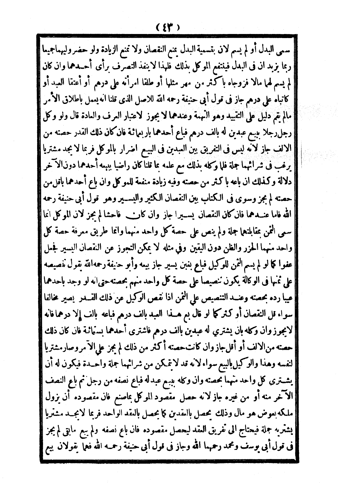 قَالَ: وَلَوْ وَكَّلَ رَجُلٌ رَجُلًا بِبَيْعِ عَبْدَيْنِ لَهُ بِأَلْفِ دِرْهَمٍ، فَبَاعَ أَحَدَهُمَا بِأَرْبَعِمِائَةٍ، فَإِنْ كَانَ ذَلِكَ الْقَدْرُ حِصَّتَهُ مِنْ الْأَلْفِ جَازَ؛ لِأَنَّهُ لَيْسَ فِي التَّفْرِيقِ بَيْنَ الْعَبْدَيْنِ فِي الْبَيْعِ إضْرَارٌ بِالْمُوَكِّلِ، فَرُبَّمَا لَا يَجِدُ مُشْتَرِيًا يَرْغَبُ فِي شِرَائِهِمَا جُمْلَةً، فَلَمَّا وَكَّلَهُ بِذَلِكَ مَعَ عِلْمِهِ بِمَا قُلْنَا كَانَ رَاضِيًا بِبَيْعِهِ أَحَدَهُمَا دُونَ الْآخَرِ دَلَالَةً، وَكَذَلِكَ إنْ بَاعَهُ بِأَكْثَرَ مِنْ حِصَّتِهِ وَفِيهِ زِيَادَةُ مَنْفَعَةٍ لِلْمُوَكِّلِ، وَإِنْ بَاعَ أَحَدَهُمَا بِأَقَلَّ مِنْ حِصَّتِهِ لَمْ يَجُزْ، وَسَوَّى فِي الْكِتَابِ بَيْنَ النُّقْصَانِ الْكَثِيرِ وَالْيَسِيرِ وَهُوَ قَوْلُ أَبِي حَنِيفَةَ - رَحِمَهُ اللَّهُ - فَأَمَّا عِنْدَهُمَا فَإِنْ كَانَ النُّقْصَانُ يَسِيرًا جَازَ، وَإِنْ كَانَ فَاحِشًا لَمْ يَجُزْ؛ لِأَنَّ الْمُوَكِّلَ إنَّمَا سَمَّى الثَّمَنَ بِمُقَابَلَتِهِمَا جُمْلَةً، وَلَمْ يَنُصَّ عَلَى حِصَّةِ كُلِّ وَاحِدٍ مِنْهُمَا، وَإِنَّمَا طَرِيقُ مَعْرِفَةِ حِصَّةِ كُلِّ وَاحِدٍ مِنْهُمَا الْحَزْرُ وَالظَّنُّ دُونَ الْيَقِينِ، وَفِي مِثْلِهِ لَا يُمْكِنُ التَّجَوُّزُ عَنْ النُّقْصَانِ الْيَسِيرِ، فَجُعِلَ عَفْوًا.