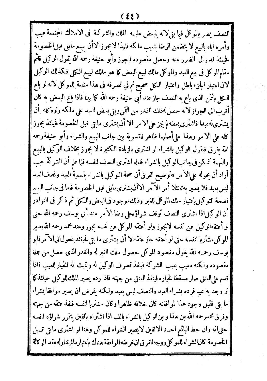 النِّصْفِ يَضُرُّ بِالْمُوَكِّلِ فِيمَا بَقِيَ؛ لِأَنَّهُ يَتَبَعَّضُ عَلَيْهِ الْمِلْكُ، وَالشَّرِكَةُ فِي الْأَمْلَاكِ الْمُجْتَمِعَةِ عَيْبٌ، وَأَمْرُهُ إيَّاهُ بِالْبَيْعِ لَا يَتَضَمَّنُ الرِّضَا بِتَعَيُّبِ مِلْكِهِ؛ فَلِهَذَا لَا يَجُوزُ إلَّا أَنْ يَبِيعَ مَا بَقِيَ قَبْلَ الْخُصُومَةِ فَحِينَئِذٍ قَدْ زَالَ الضَّرَرُ عَنْهُ وَحَصَلَ مَقْصُودُهُ فَيَجُوزُ.