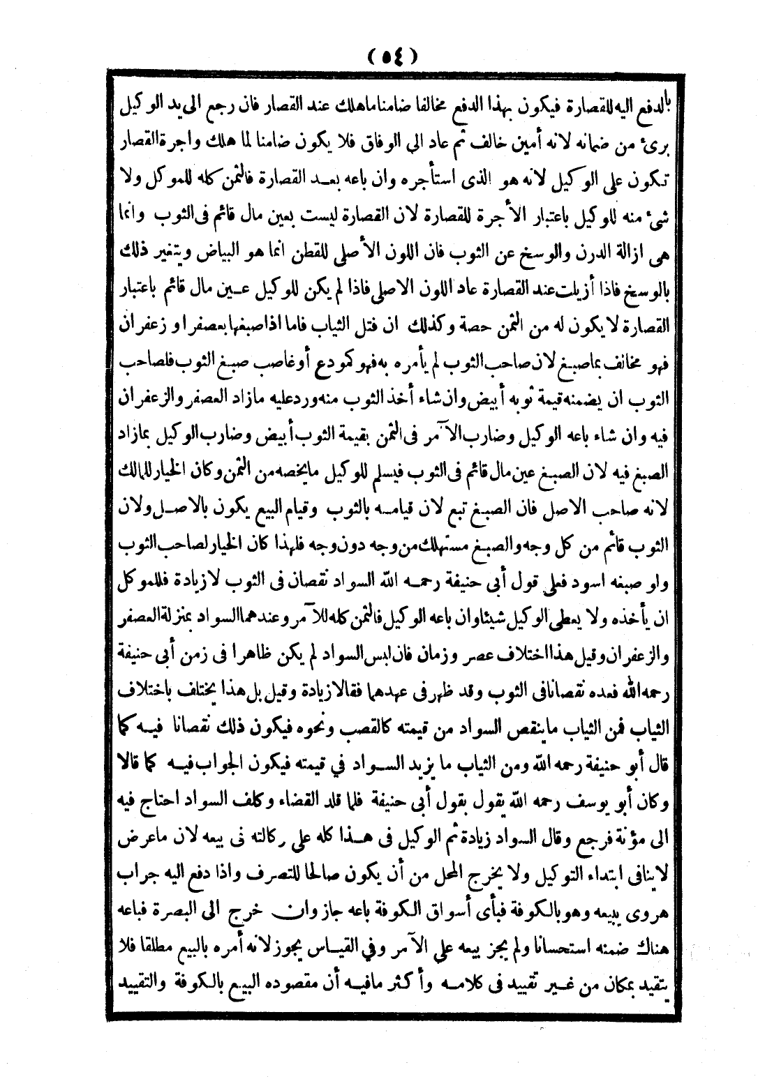 وَقِيلَ: بَلْ هَذَا يَخْتَلِفُ بِاخْتِلَافِ الثِّيَابِ: فَمِنْ الثِّيَابِ مَا يُنْقِصُ السَّوَادُ مِنْ قِيمَتِهِ كَالْقَصَبِ وَنَحْوِهِ، فَيَكُونُ ذَلِكَ نُقْصَانًا فِيهِ كَمَا قَالَ أَبُو حَنِيفَةَ - رَحِمَهُ اللَّهُ - وَمِنْ الثِّيَابِ مَا يَزِيدُ السَّوَادُ فِي قِيمَتِهِ، فَيَكُونُ الْجَوَابُ فِيهِ كَمَا قَالَا، وَكَانَ أَبُو يُوسُفَ - رَحِمَهُ اللَّهُ - يَقُولُ بِقَوْلِ أَبِي حَنِيفَةَ، فَلَمَّا قُلِّدَ الْقَضَاءَ، وَكُلِّفَ السَّوَادَ؛ احْتَاجَ فِيهِ إلَى مُؤْنَةٍ فَرَجَعَ وَقَالَ: السَّوَادُ زِيَادَةٌ، ثُمَّ الْوَكِيلُ فِي هَذَا كُلِّهِ عَلَى وَكَالَتِهِ فِي بَيْعِهِ، لِأَنَّ مَا عَرَضَ لَا يُنَافِي ابْتِدَاءَ التَّوْكِيلِ، وَلَا يُخْرِجُ الْمَحَلَّ مِنْ أَنْ يَكُونَ صَالِحًا لِلتَّصَرُّفِ.