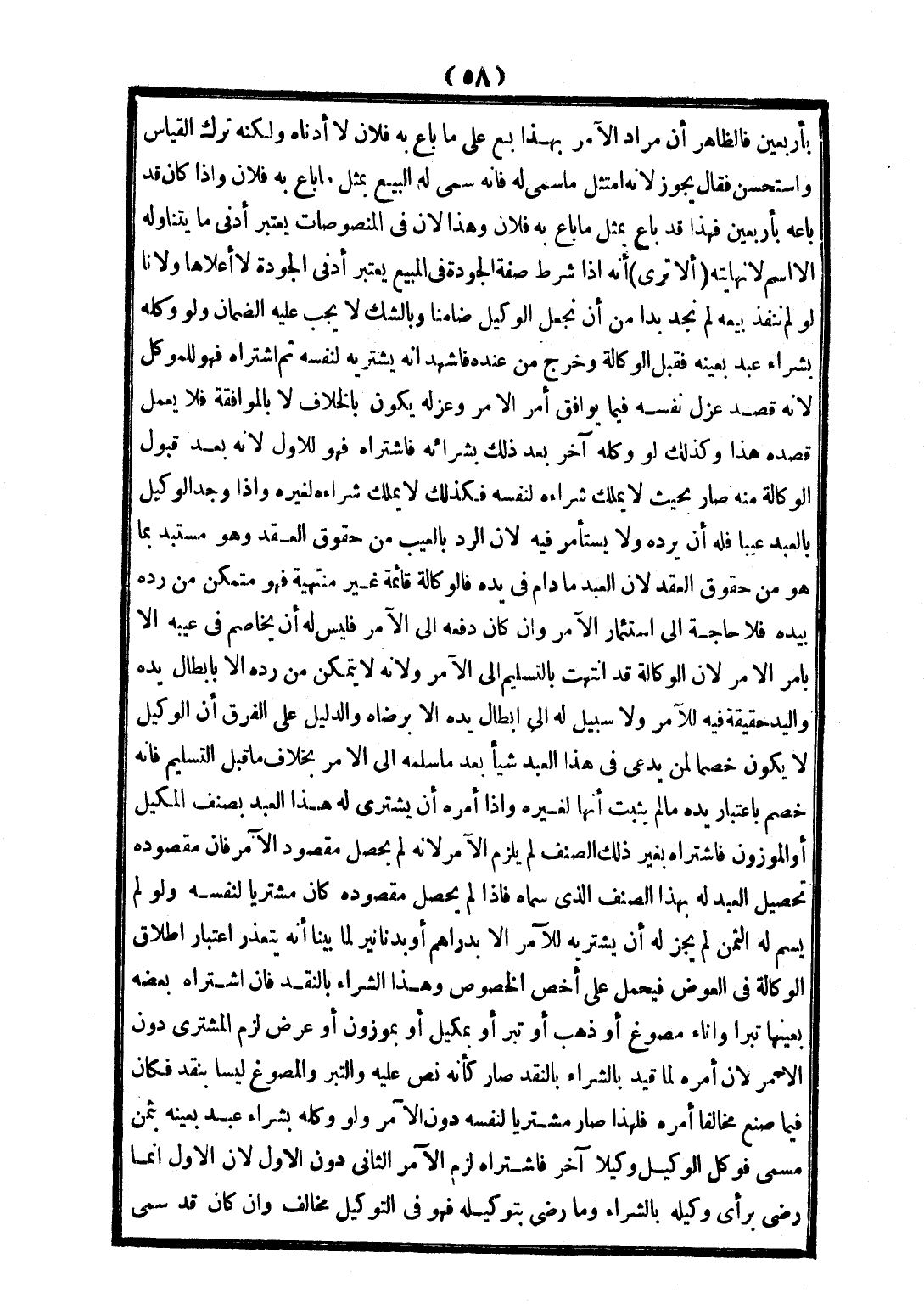 بِأَرْبَعِينَ، فَالظَّاهِرُ أَنَّ مُرَادَ الْآمِرِ بِهَذَا: بِعْ عَلَى مَا بَاعَ بِهِ فُلَانٌ لَا أَدْنَاهُ، وَلَكِنَّهُ تَرَكَ الْقِيَاسَ، وَاسْتَحْسَنَ فَقَالَ: يَجُوزُ؛ لِأَنَّهُ امْتَثَلَ مَا سَمَّى لَهُ، فَإِنَّهُ سَمَّى لَهُ الْبَيْعَ بِمِثْلِ مَا بَاعَ بِهِ فُلَانٌ، وَإِذَا كَانَ قَدْ بَاعَهُ بِأَرْبَعِينَ؛ فَهَذَا قَدْ بَاعَ بِمِثْلِ مَا بَاعَ بِهِ فُلَانٌ؛ وَهَذَا لِأَنَّ فِي الْمَنْصُوصَاتِ يُعْتَبَرُ أَدْنَى مَا يَتَنَاوَلُهُ الِاسْمُ لَا نِهَايَتُهُ، أَلَا تَرَى أَنَّهُ إذَا شَرَطَ صِفَةَ الْجَوْدَة فِي الْمَبِيعِ يَعْتَبِرُ أَدْنَى الْجُودَةِ لَا أَعْلَاهَا، وَلِأَنَّا لَوْ لَمْ نُنْفِذْ بَيْعَهُ لَمْ نَجِدْ بُدًّا مِنْ أَنْ نَجْعَلَ الْوَكِيلَ ضَامِنًا، وَبِالشَّكِّ لَا يَجِبُ عَلَيْهِ الضَّمَانُ.