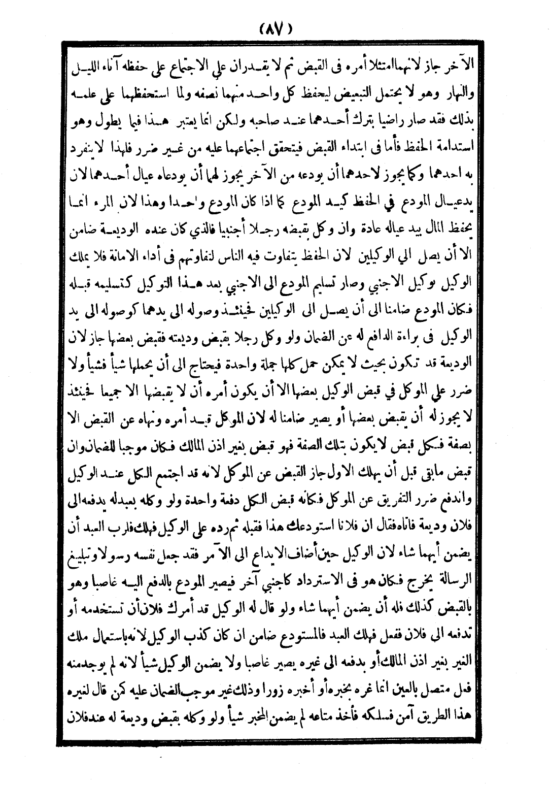 الْآخَرِ جَازَ لِأَنَّهُمَا امْتَثَلَا أَمْرَهُ فِي الْقَبْضِ ثُمَّ لَا يَقْدِرَانِ عَلَى الِاجْتِمَاعِ عَلَى حِفْظِهِ آنَاءَ اللَّيْلِ وَالنَّهَارِ وَهُوَ لَا يَحْتَمِلُ التَّبْعِيضَ لِيَحْفَظَ كُلُّ وَاحِدٍ مِنْهُمَا نِصْفَهُ وَلَمَّا اسْتَحْفَظَهُمَا عَلَى عِلْمِهِ بِذَلِكَ فَقَدْ صَارَ رَاضِيًا بِتَرْكِ أَحَدِهِمَا عِنْدَ صَاحِبِهِ وَلَكِنْ إنَّمَا يُعْتَبَرُ هَذَا فِيمَا يَطُولُ وَهُوَ اسْتِدَامَةُ الْحِفْظِ فَأَمَّا فِي ابْتِدَاءِ الْقَبْضِ فَيَتَحَقَّقُ اجْتِمَاعُهُمَا عَلَيْهِ مِنْ غَيْرِ ضَرَرٍ فَلِهَذَا لَا يَنْفَرِدُ بِهِ أَحَدُهُمَا وَكَمَا يَجُوزُ لِأَحَدِهِمَا أَنْ يُودِعَهُ مِنْ الْآخَرِ يَجُوزُ لَهُمَا أَنْ يُودِعَاهُ عِيَالَ أَحَدِهِمَا لِأَنَّ يَدَ عِيَالِ الْمُودِعِ فِي الْحِفْظِ كَيَدِ الْمُودِعِ كَمَا إذَا كَانَ الْمُودِعُ وَاحِدًا وَهَذَا لِأَنَّ الْمَرْءَ إنَّمَا يَحْفَظُ الْمَالَ بِيَدِ عِيَالِهِ عَادَةً وَإِنْ وَكَّلَ بِقَبْضِهِ رَجُلًا أَجْنَبِيًّا فَاَلَّذِي كَانَ عِنْدَهُ الْوَدِيعَةُ ضَامِنٌ إلَّا أَنْ يَصِلَ إلَى الْوَكِيلَيْنِ لِأَنَّ الْحِفْظَ يَتَفَاوَتُ فِيهِ النَّاسُ لِتَفَاوُتِهِمْ فِي أَدَاءِ الْأَمَانَةِ فَلَا يَمْلِكُ الْوَكِيلُ بِوَكِيلِ الْأَجْنَبِيِّ وَصَارَ تَسْلِيمُ الْمُودِعِ إلَى الْأَجْنَبِيِّ بَعْدَ هَذَا التَّوْكِيلِ كَتَسْلِيمِهِ قَبْلَهُ فَكَانَ الْمُودِعُ ضَامِنًا إلَى أَنْ يَصِلَ إلَى الْوَكِيلَيْنِ فَحِينَئِذٍ وُصُولُهُ إلَى يَدِهِمَا كَوُصُولِهِ إلَى يَدِ الْوَكِيلِ فِي بَرَاءَةِ الدَّافِعِ لَهُ عَنْ الضَّمَانِ