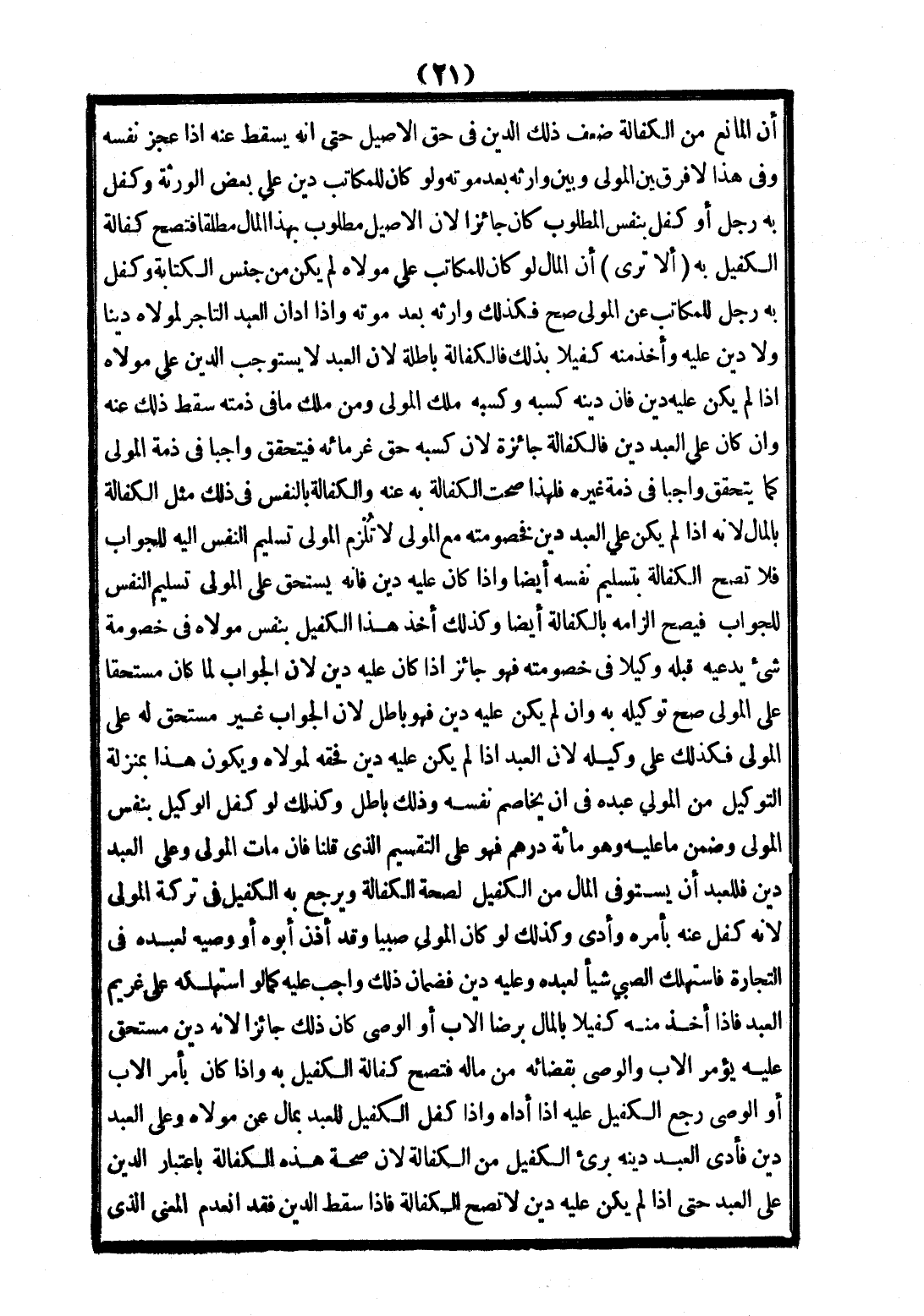 أَنَّ الْمَانِعَ مِنْ الْكَفَالَةِ ضِعْفُ ذَلِكَ الدَّيْنِ فِي حَقِّ الْأَصِيلِ حَتَّى أَنَّهُ يَسْقُطُ عَنْهُ إذَا عَجَزَ نَفْسُهُ وَفِي هَذَا لَا فَرْقَ بَيْنَ الْمَوْلَى وَبَيْنَ وَارِثِهِ بَعْدَ مَوْتِهِ
